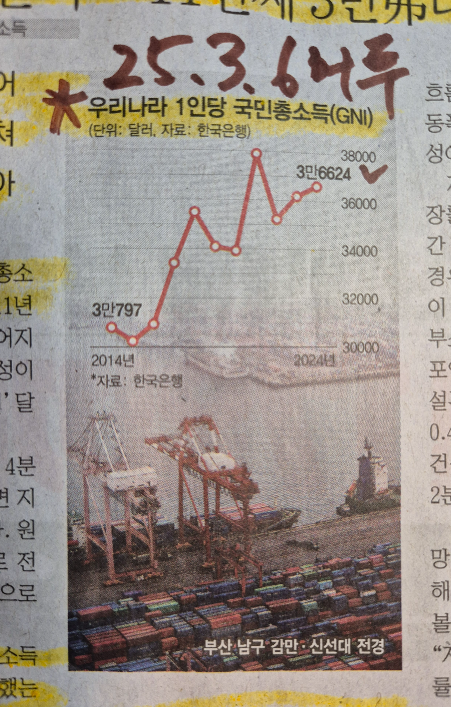 -강창구 한국은행 국민소득 부장은 1인 GNI가 1.2% 성장하였지만 달러 상승으로 인하여 실제 명목증가율은 5.7%로 가시적인 성장성을 보여주고 있다고 설명한다.
