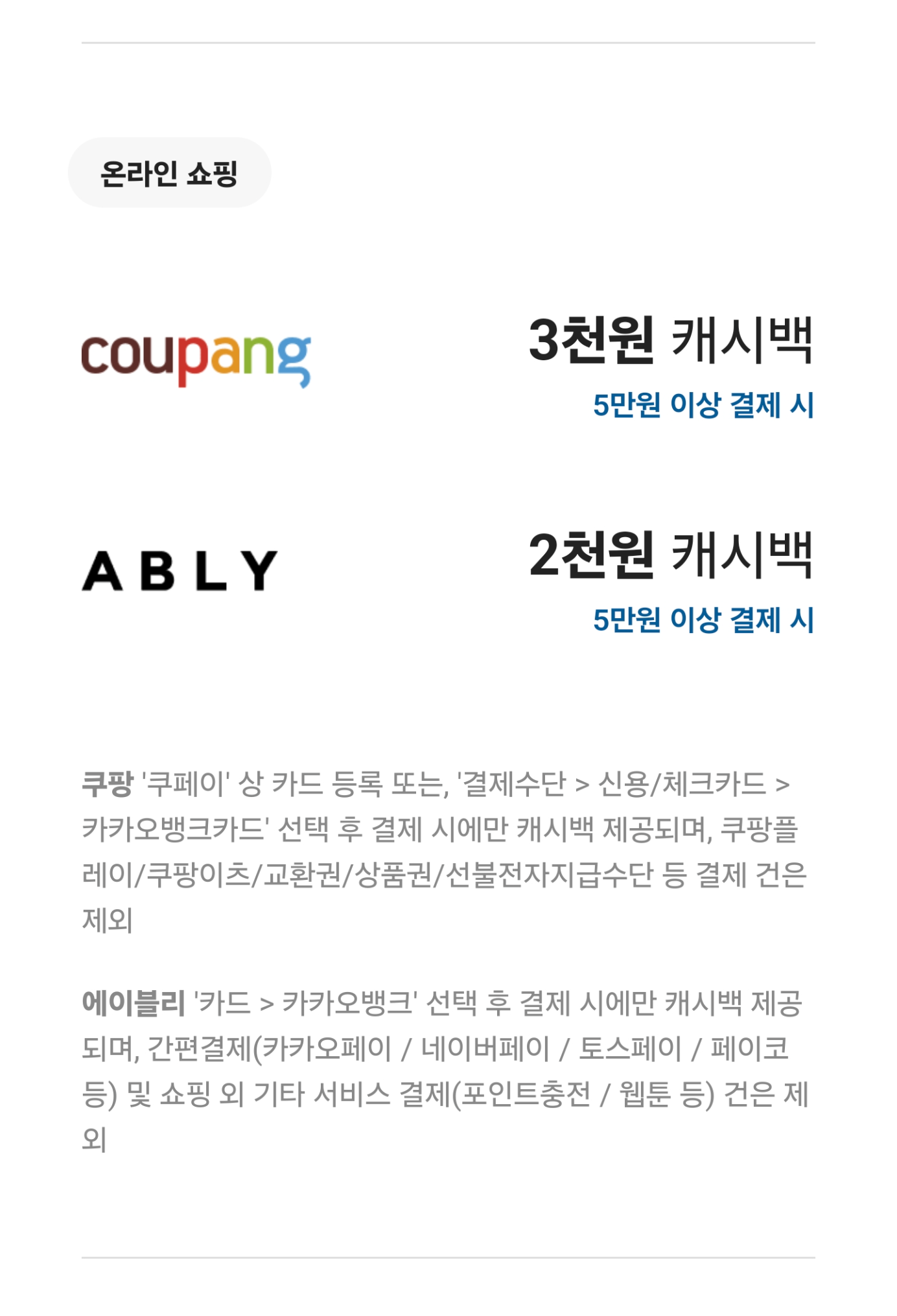 쿠팡은 언제나 진리 5만 원 이상 구입 시 3천 원 캐시백 정도면 놓칠 수 없는 혜택이다.