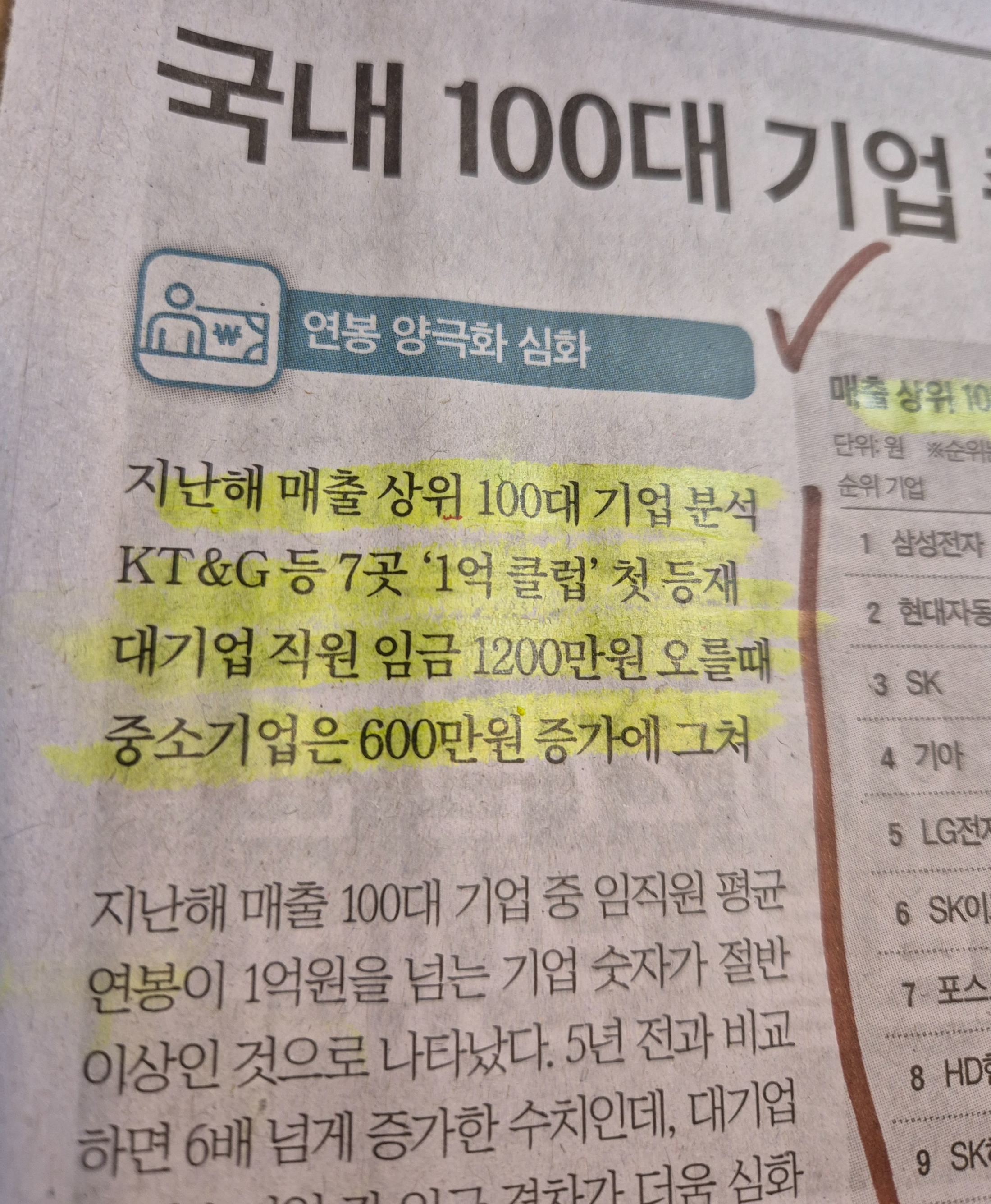 -노동자에게는 좋은 모습이지만 중소기업에게는 해당 사항이 크게 영향이 변화가 없어 대기업과 중소기업의 격차는 갈수록 커지고 있다.