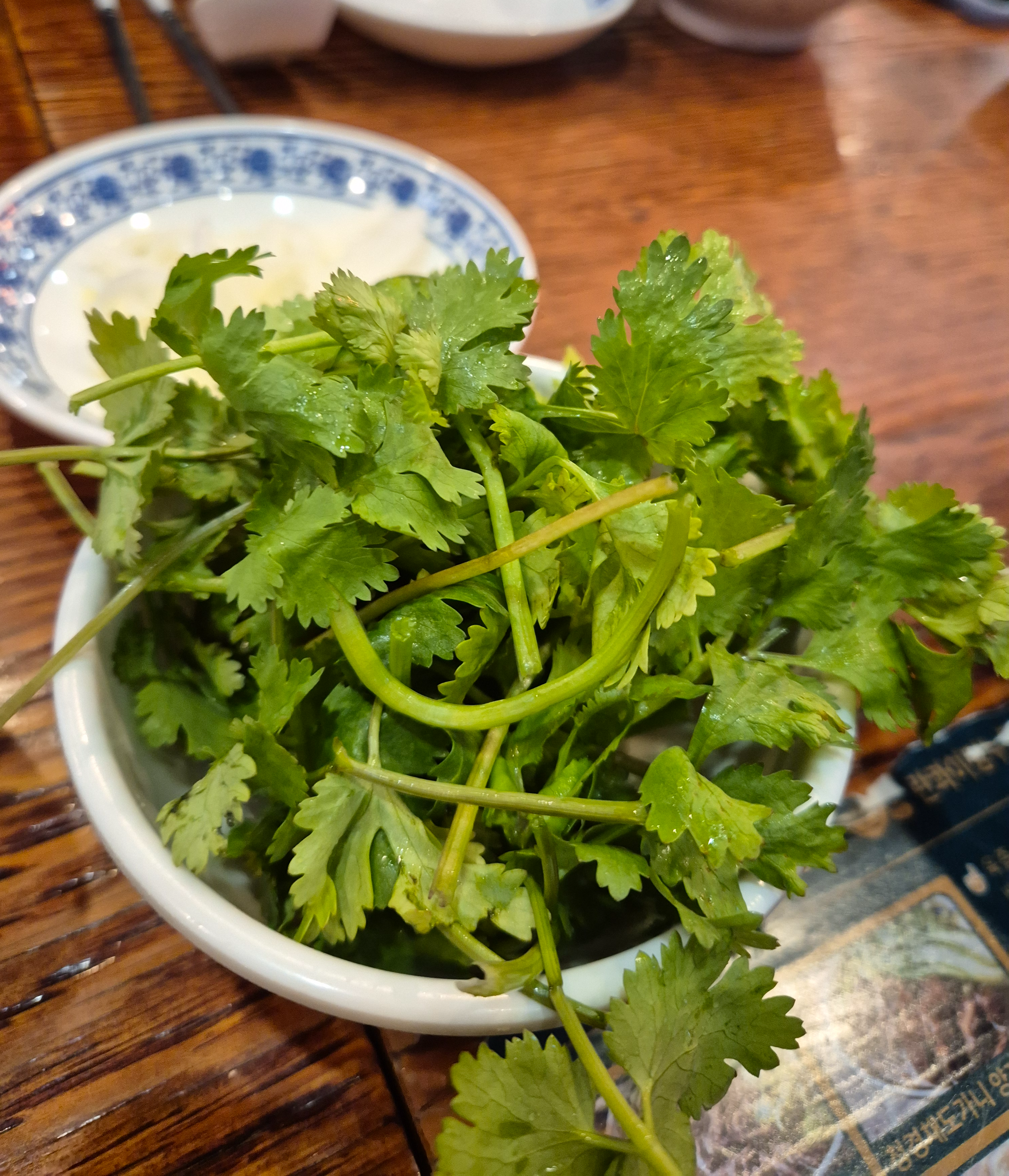 오한수 우육탕면의 경우 예전 무한대로 먹을 수 있도록 제공했다면 이제는 정말 제한적으로 양을 제공하는 곳이 많아 이렇게 줄기를 포함한 고수를 제공해 주는 것이 마음에 들었다.