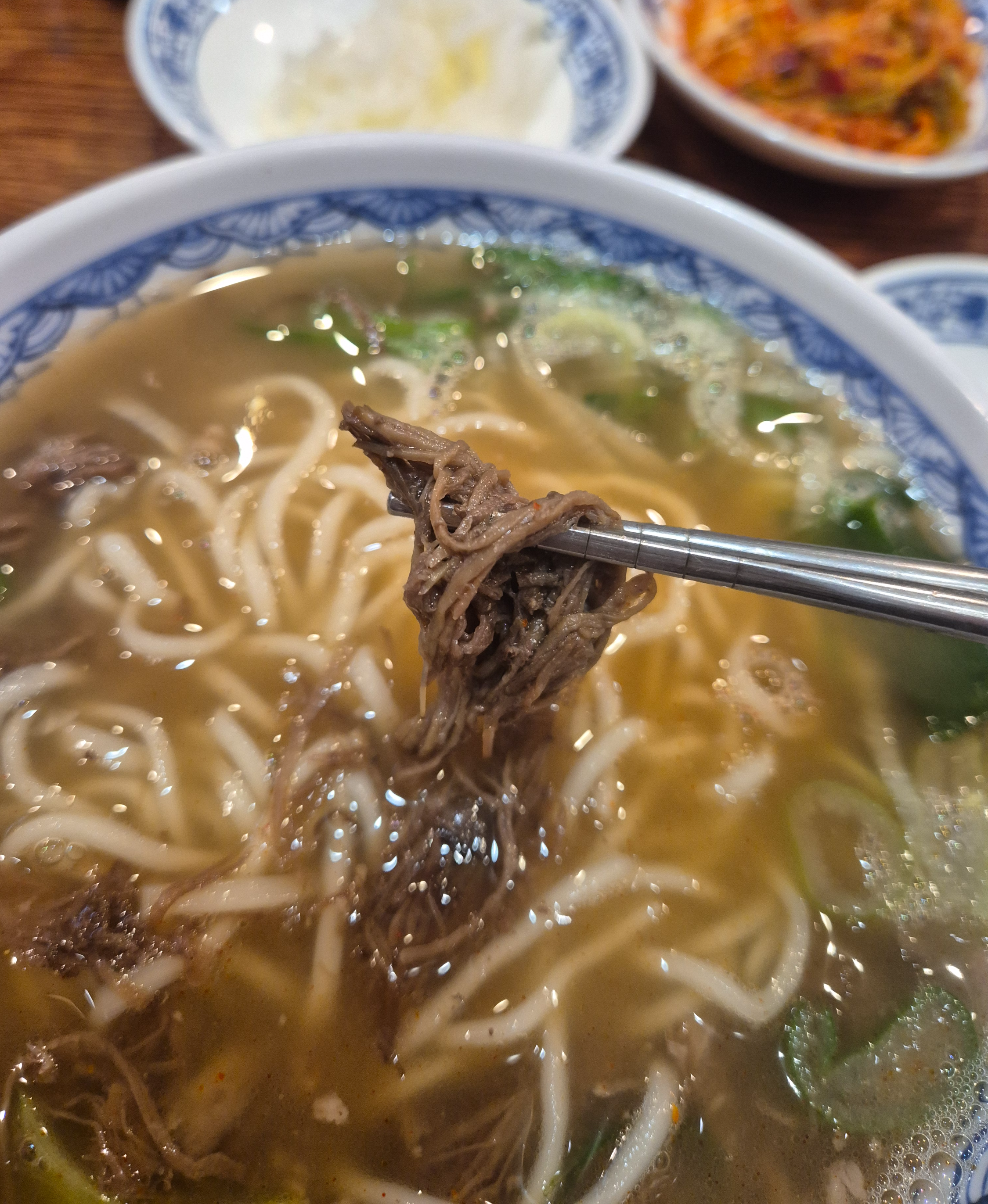 양지머리나 힘줄을 부드럽게 장시간 끓여낸 고기를 사용합니다. 고기는 간장과 향신료로 푹 고아내 쫄깃하고 부드럽습니다. - 국물 – 맑고 진한 간장 베이스: