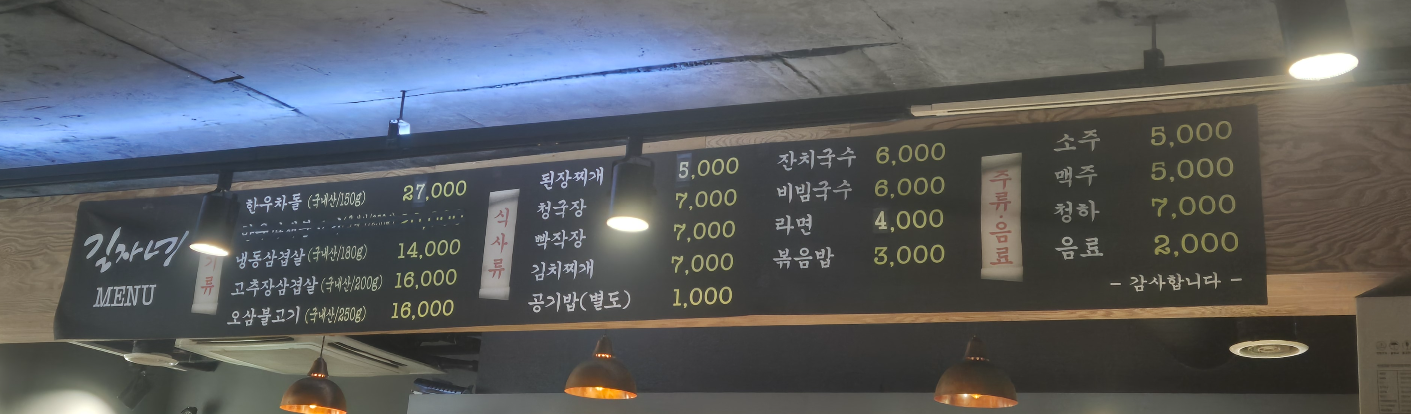 메뉴는 역시나 냉동삼겹살과 고추장 삼겹살이 메인으로 보인다.
