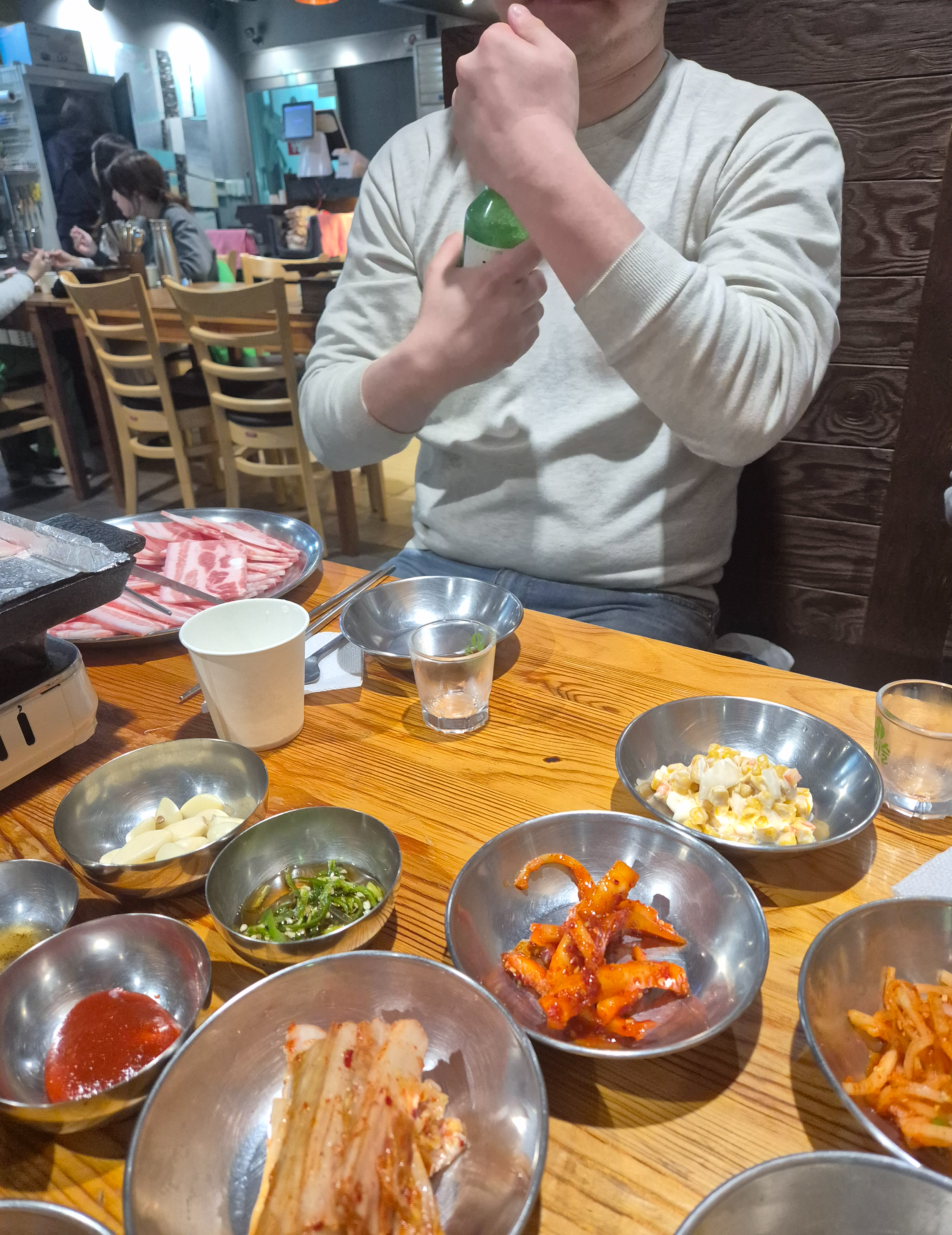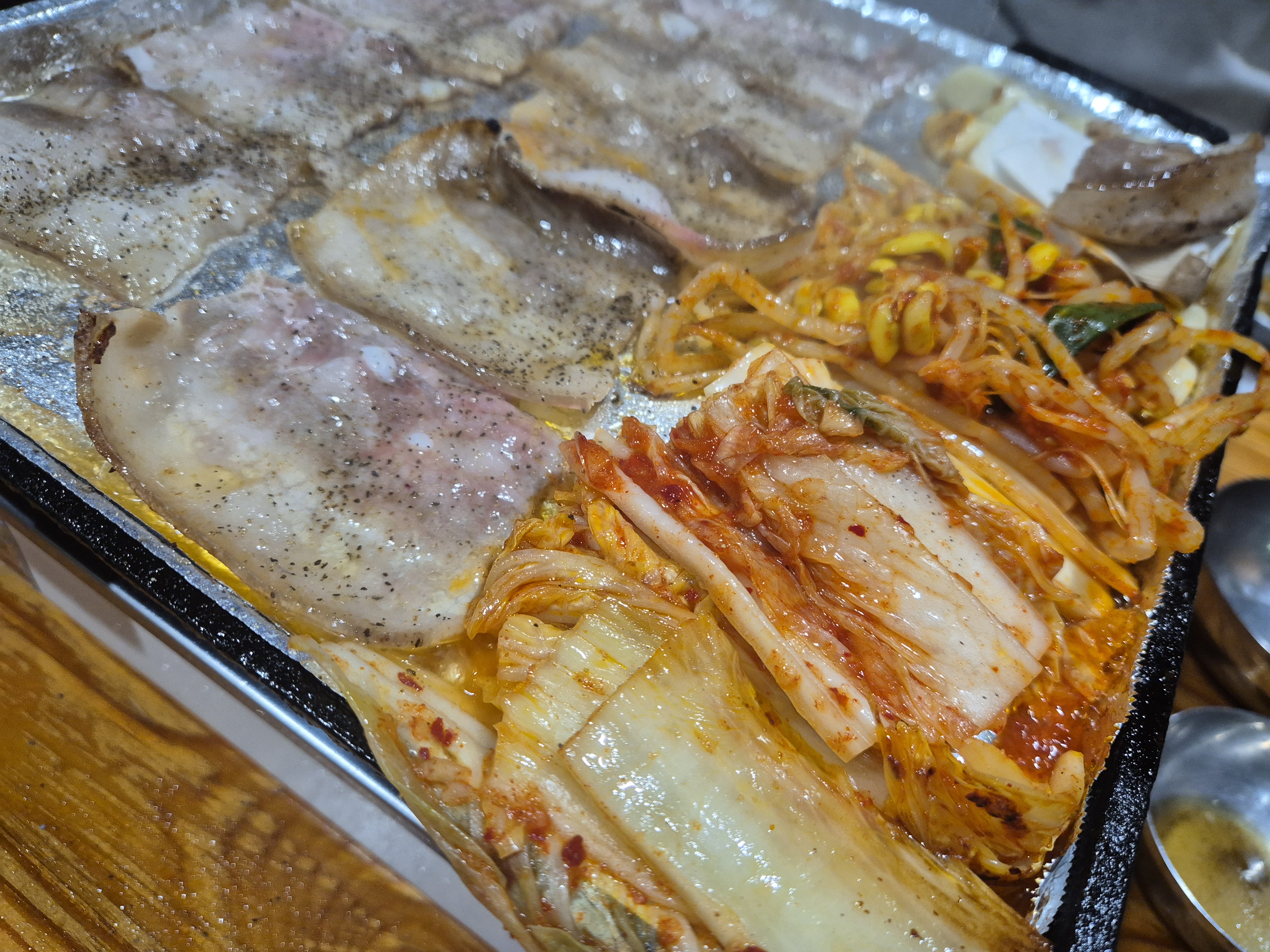 칼바람을 맞으며 가게에 도착해 뜨거운 불판에 냉삼이 올라가니 따뜻하고 아늑한 저녁식사 시간으로 바뀐다.