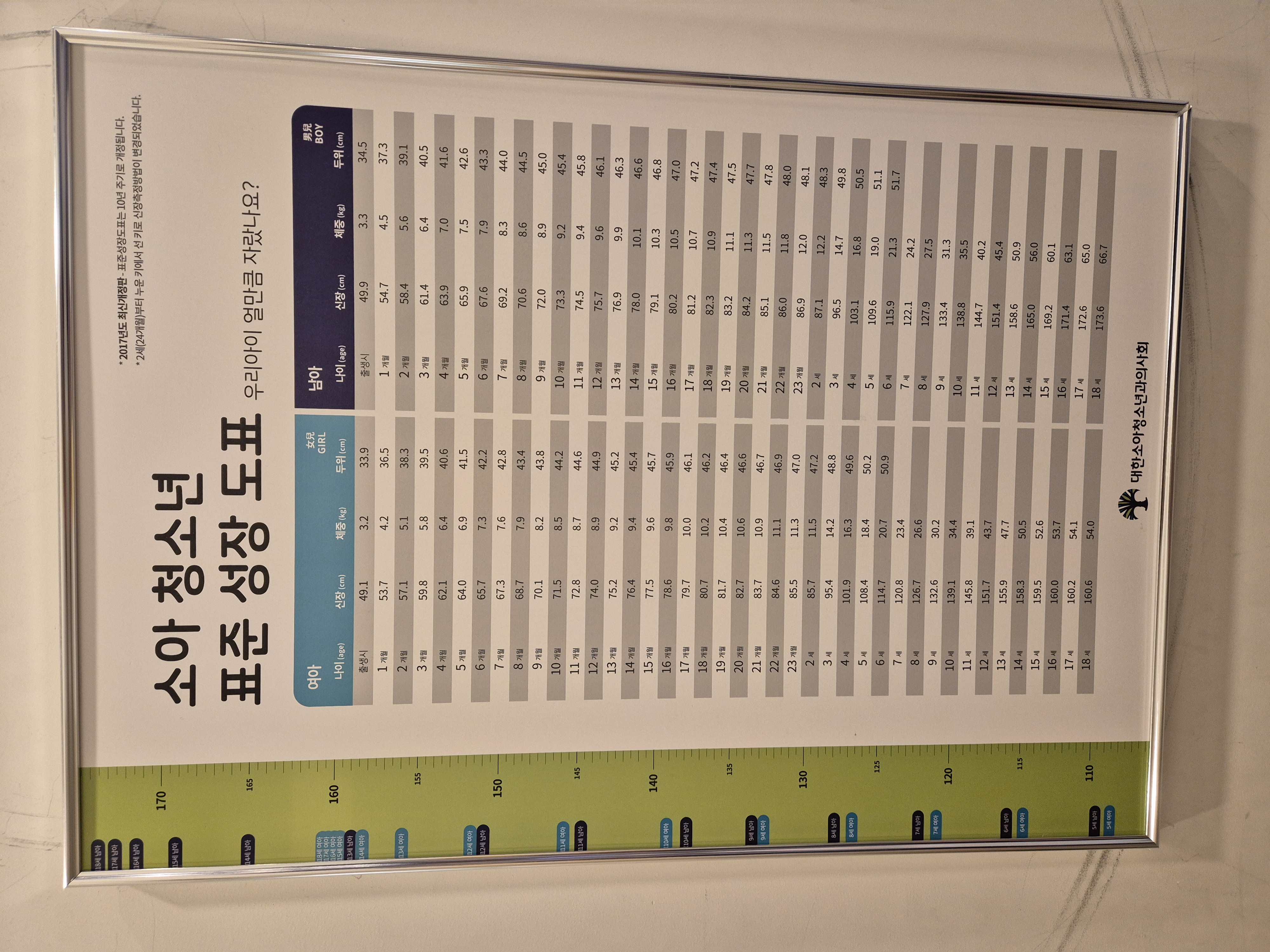 여아 기준을 키와 몸무게 모두 상위 10% 속한다.
