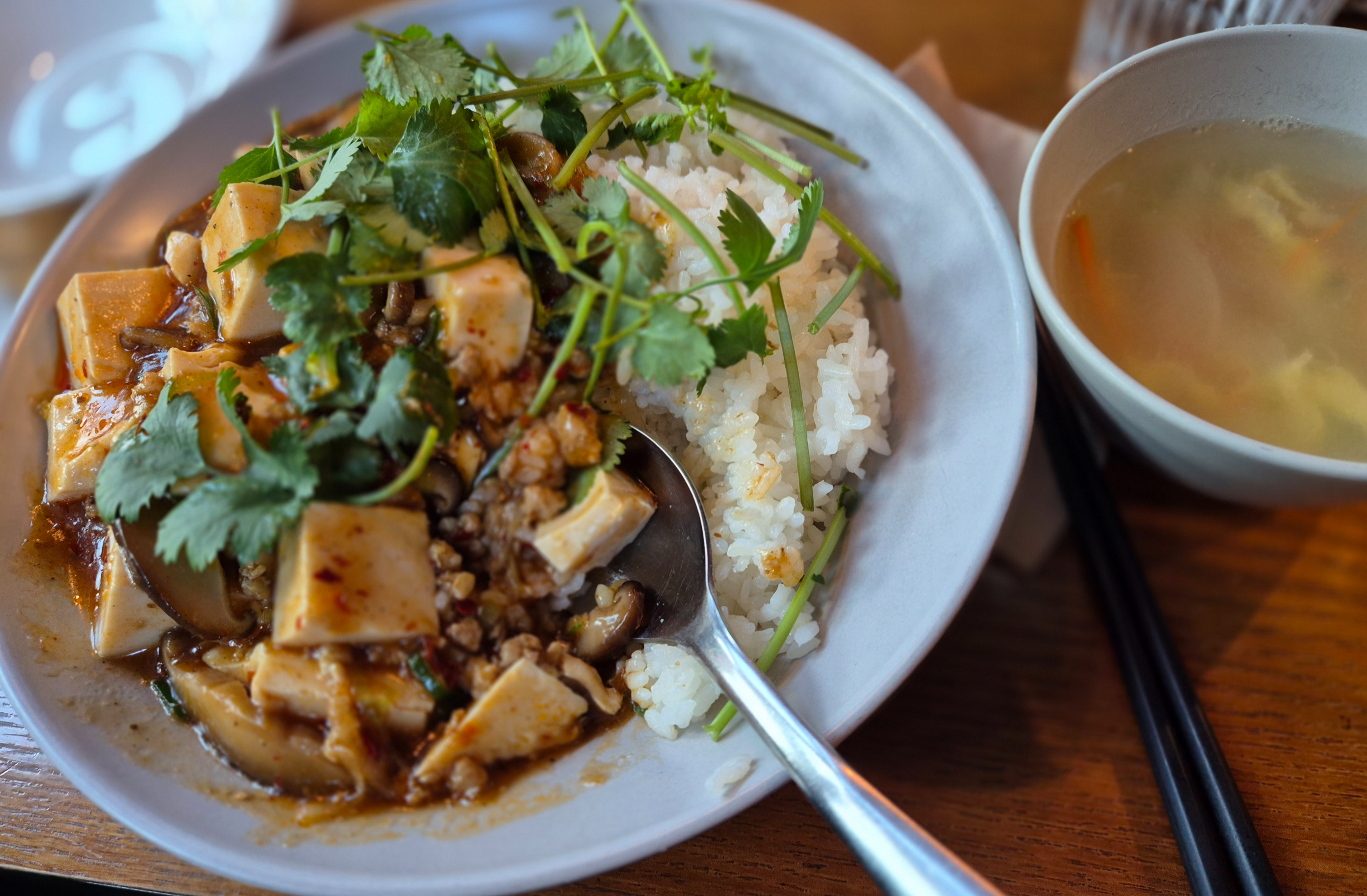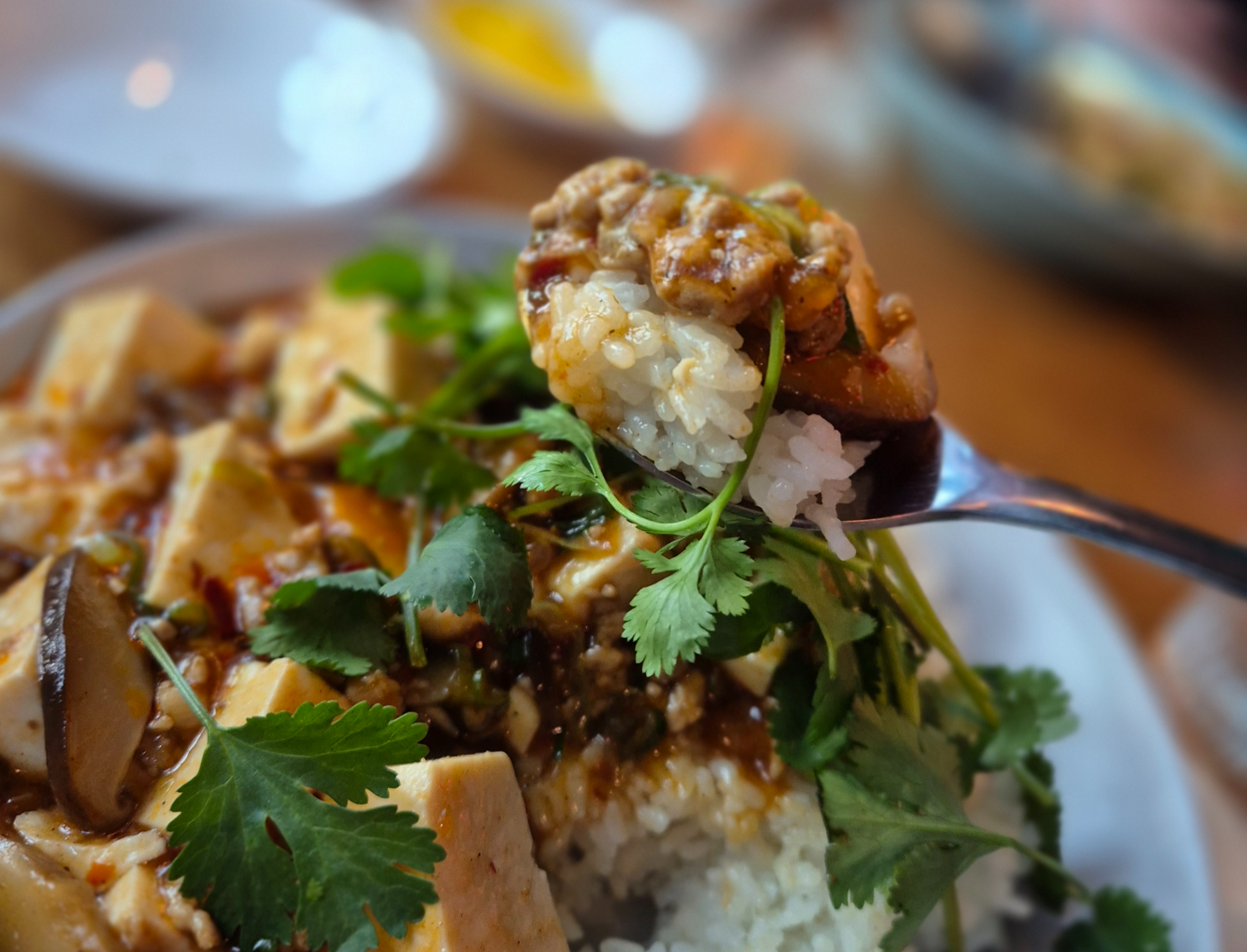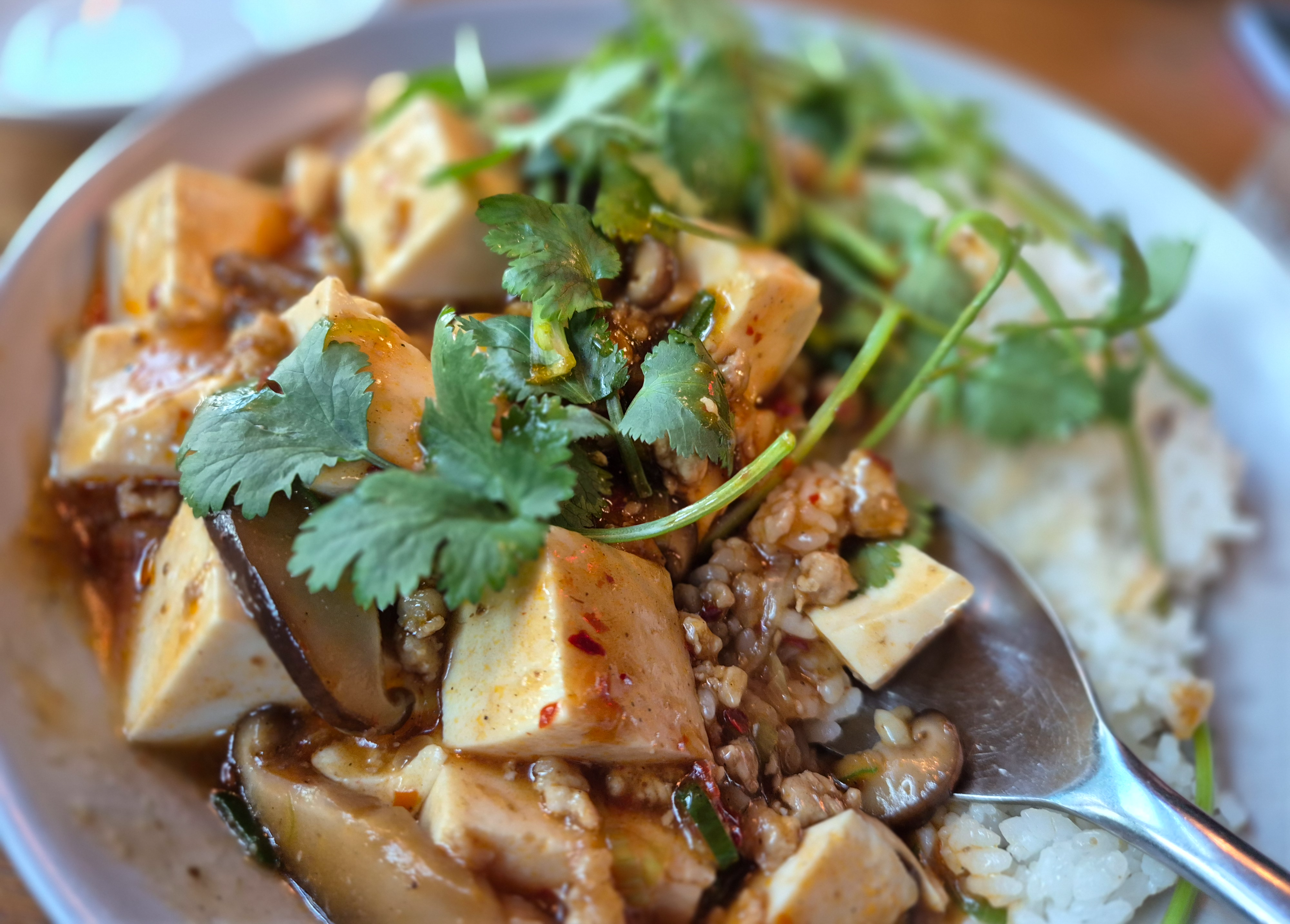 꼭 마파두부에 고수를 추가해서 먹어보시기를, 중국적인 맛과 향이 더욱 살아날 것이다.