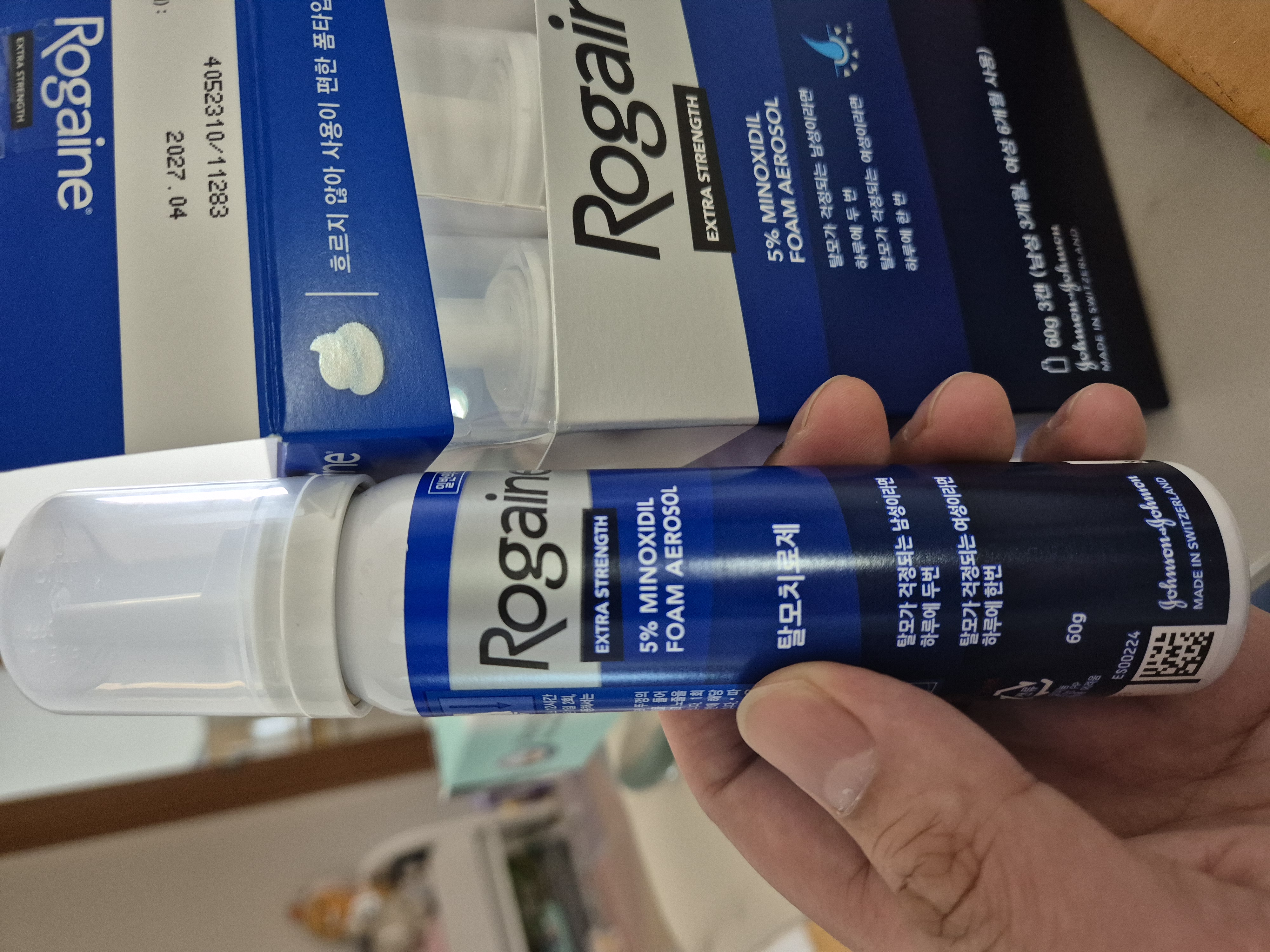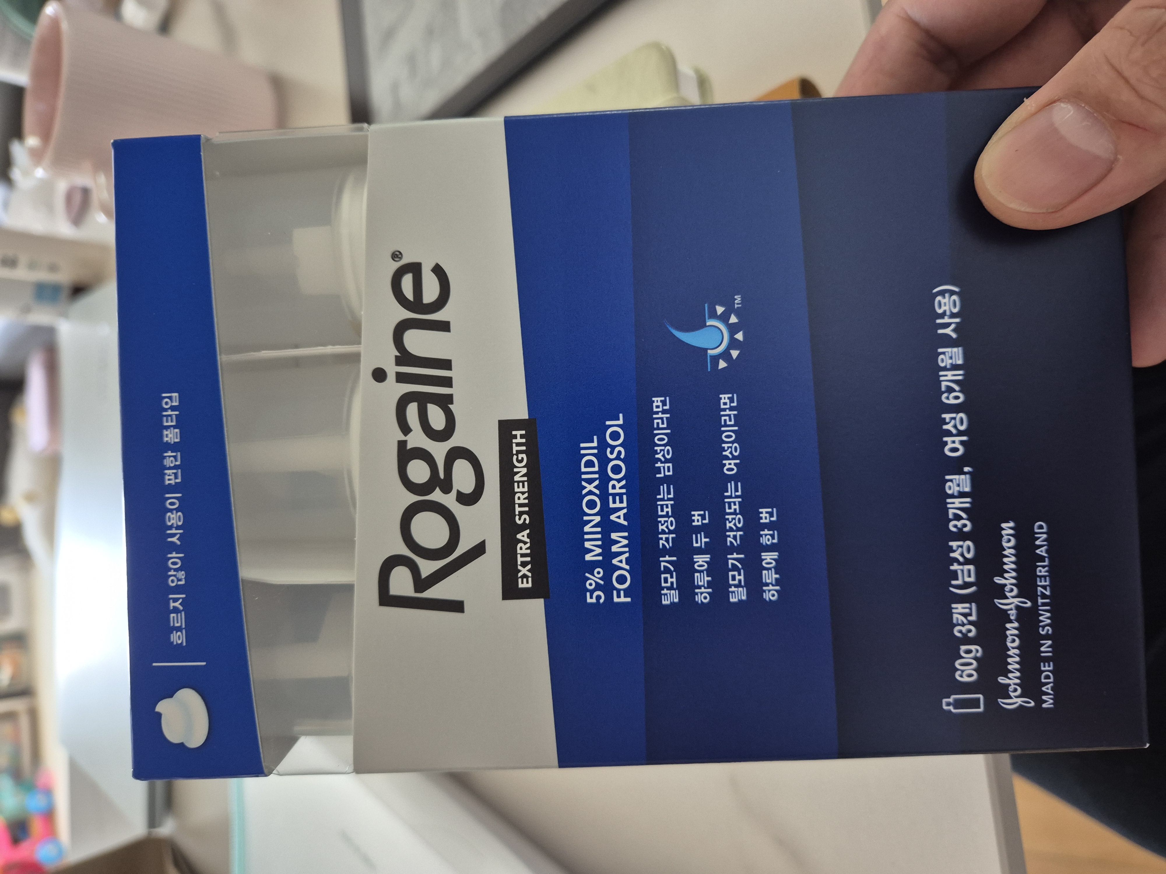로게인폼(Rogaine Foam)은 미녹시딜(Minoxidil) 5%를 주성분으로 하는 탈모 치료제. 폼 형태로 되어 있어 사용이 간편하며, 남성과 여성 모두 사용할 수 있다고 한다. 아침 출근 전 한번, 씻고 자기 전 한번 남자의 경우 하루에 2번, 여성의 경우 하루 1번만 꾸준히 사용해도 탈모 치료에 도움을 준다고 한다.