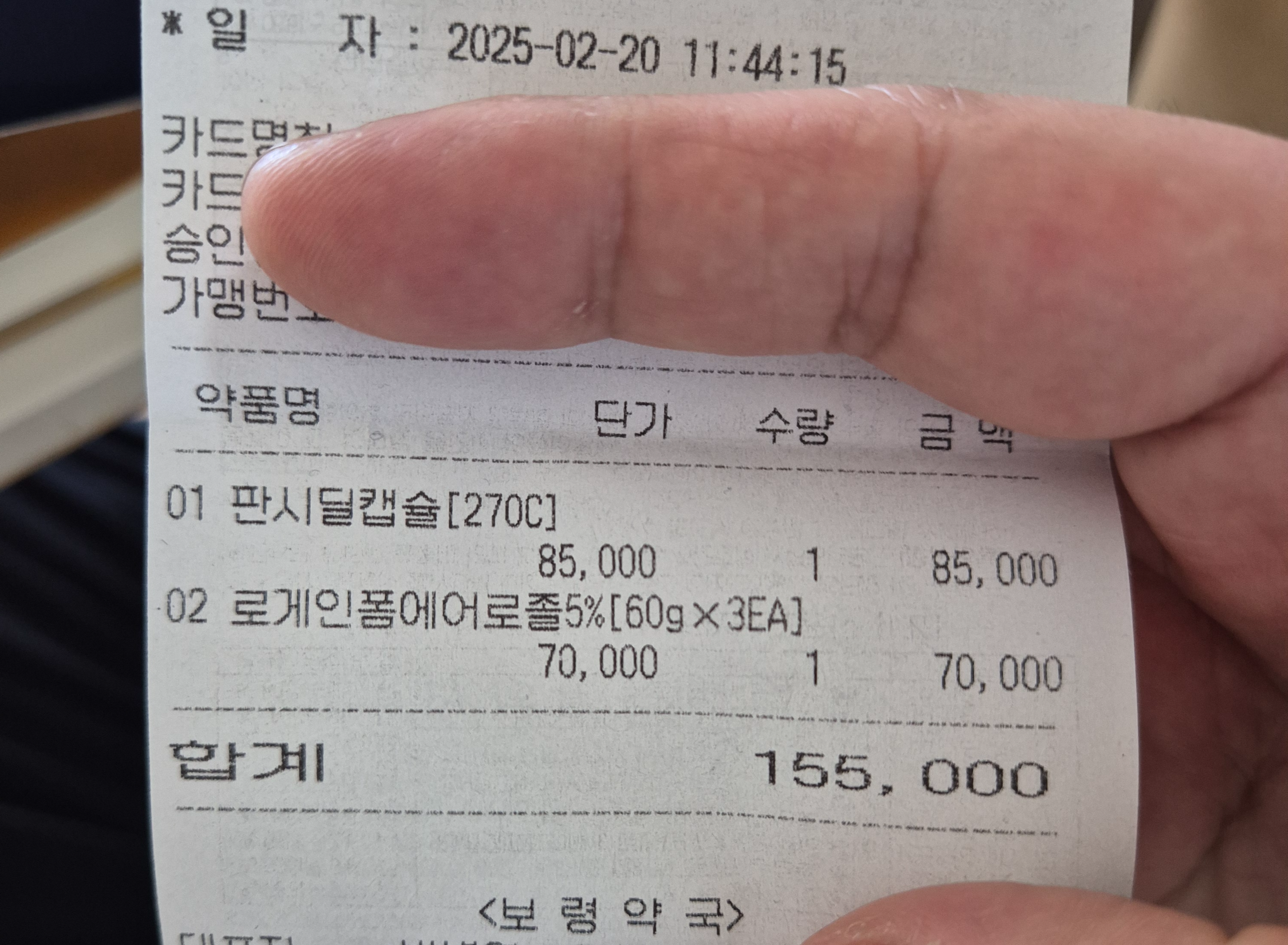로게인폼과 함께 구입한 것은 판시딜 캡슐 270알 : 85,000원