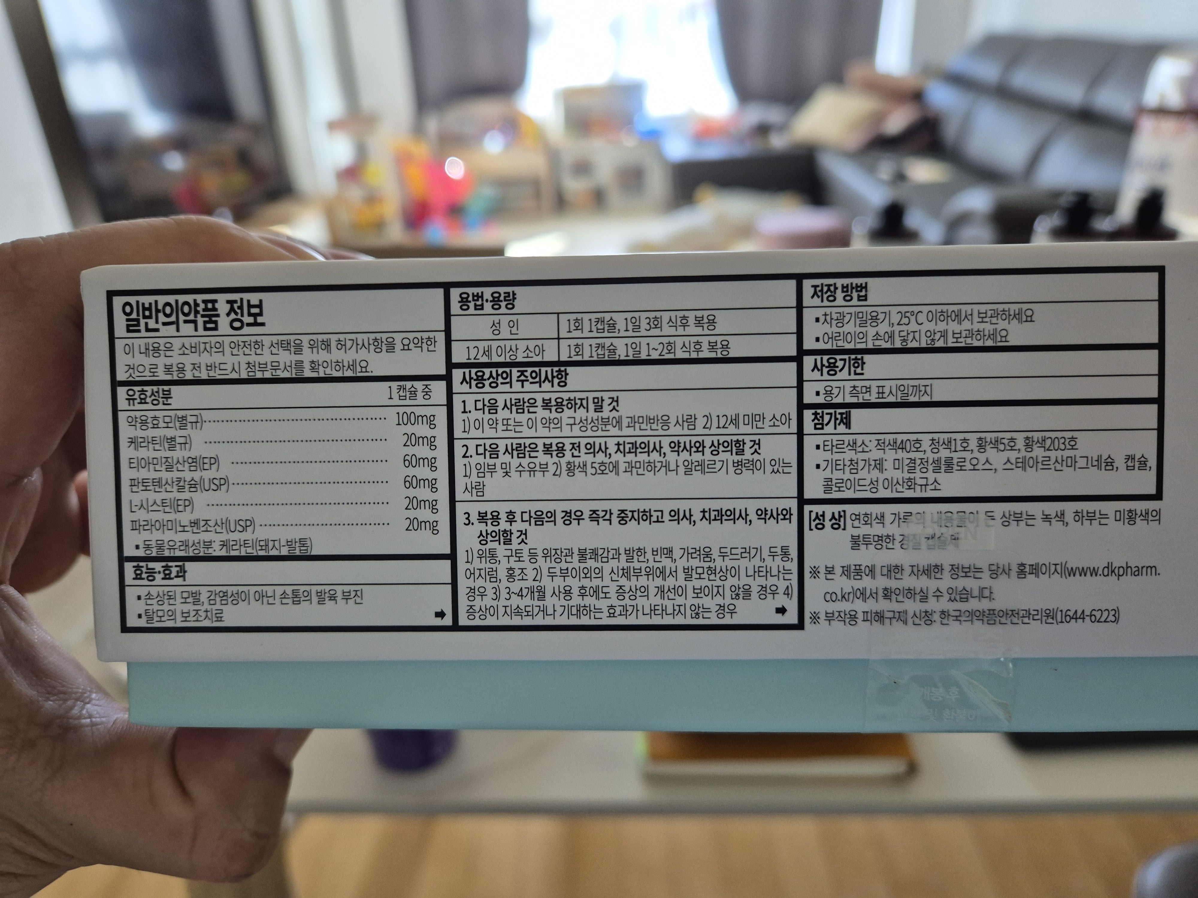 - 파라아미노벤조산(20mg): 비타민 B 복합체로, 모발 색소 유지에 도움을 줄 수 있습니다.