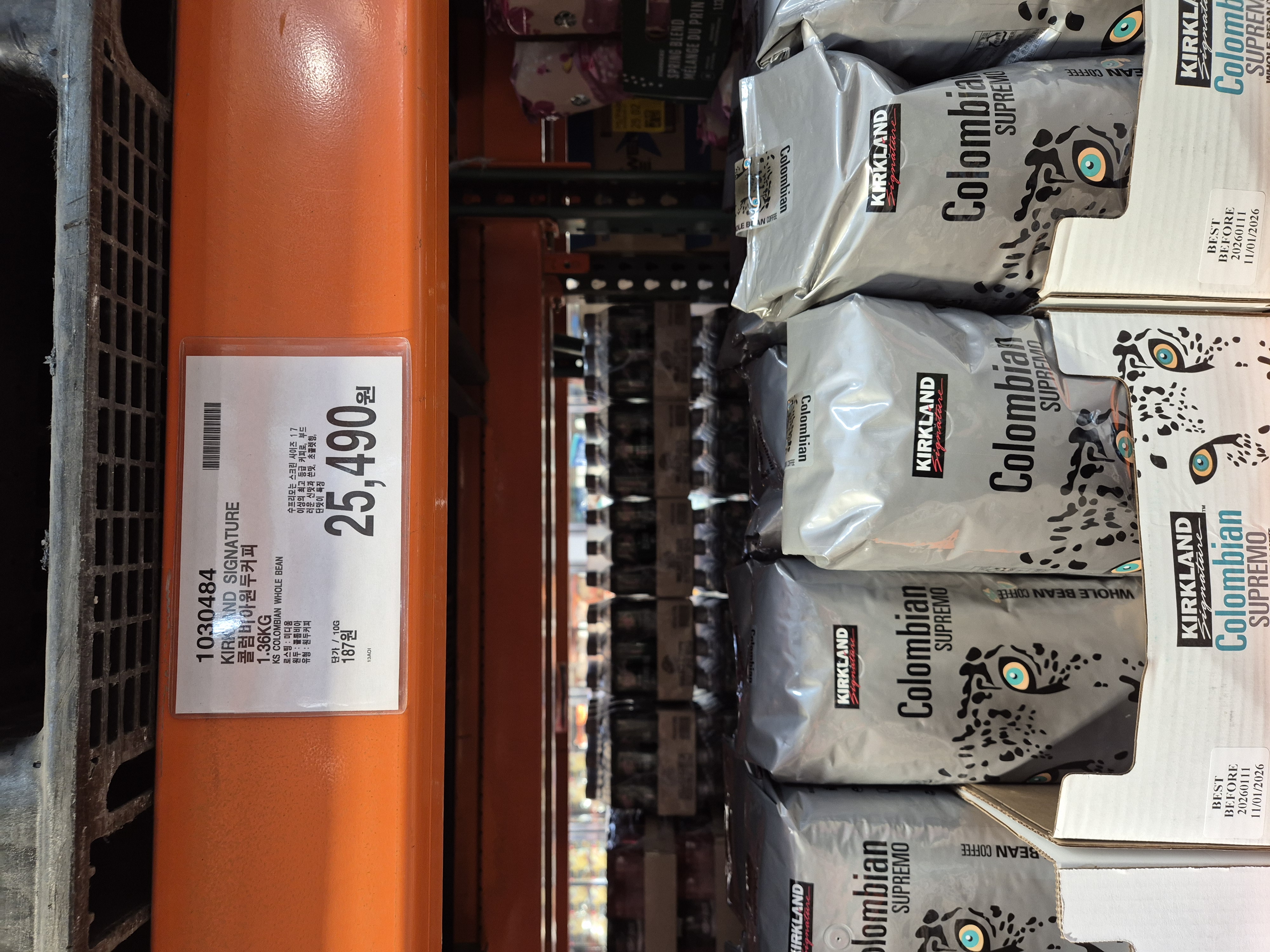 4) 커클랜드 콜롬비아 원두커피 1.36kg : 25,490원