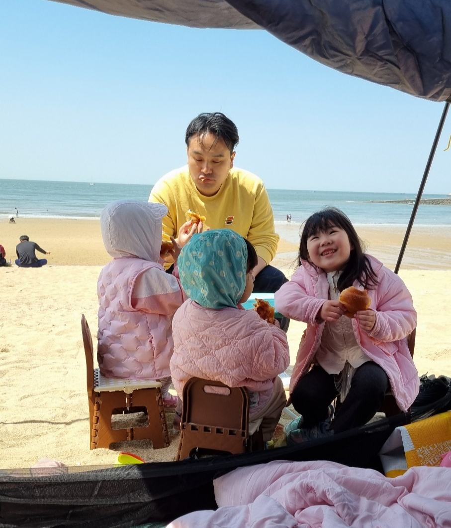 텐트나 의자에 앉아 따스한 햇살을 받으며 시원한 바다의 바람과 파도 소리와 함께