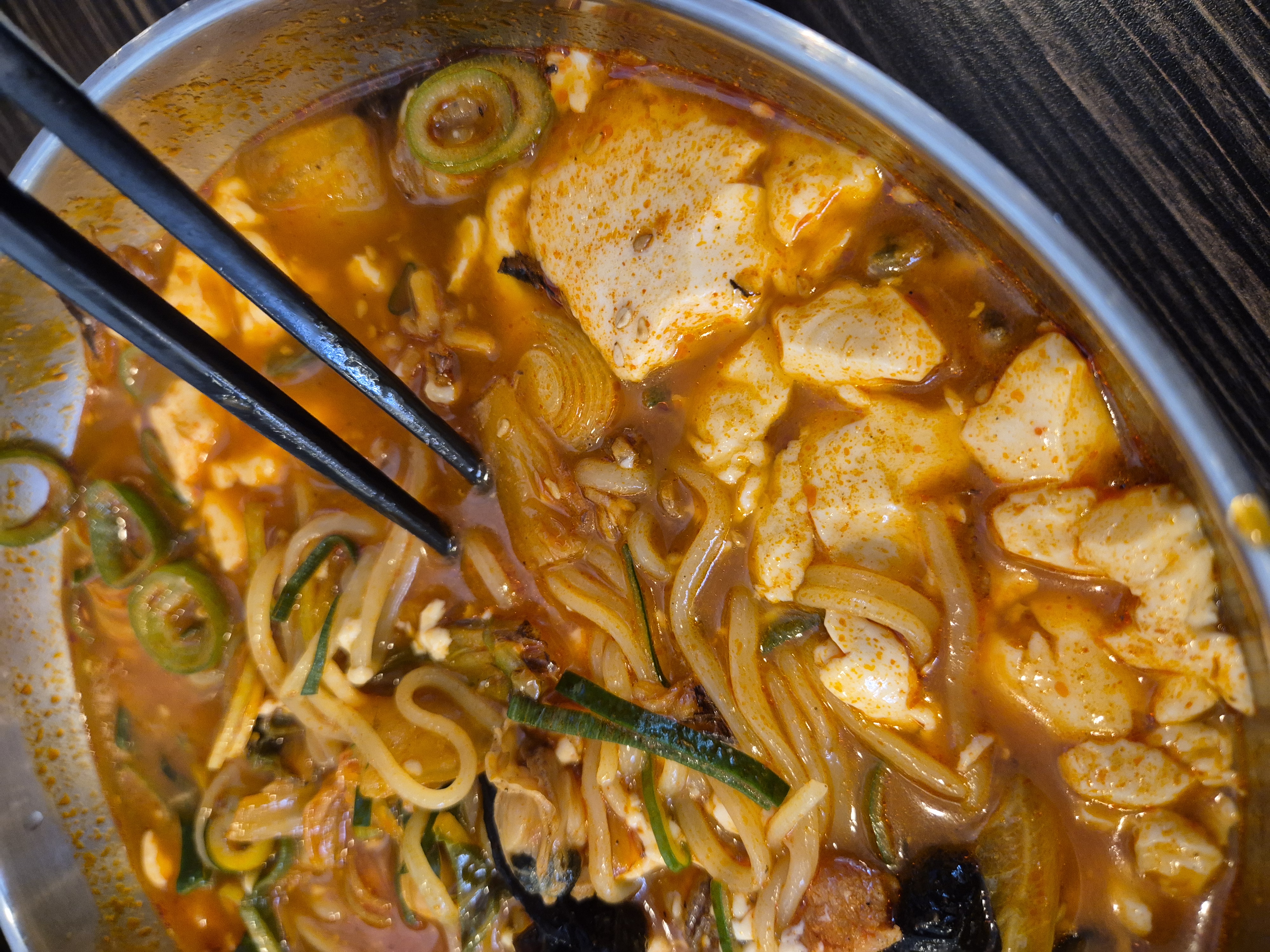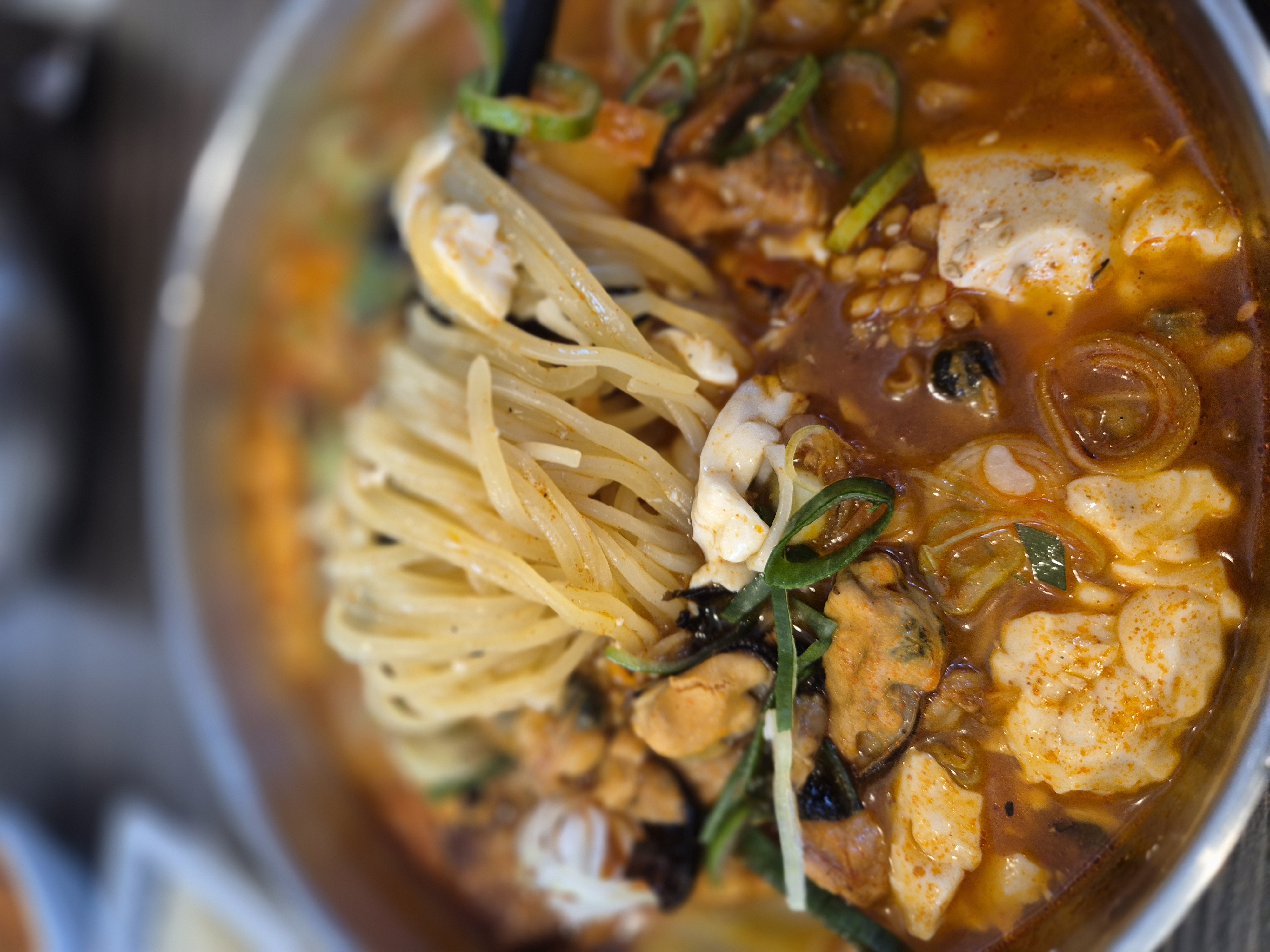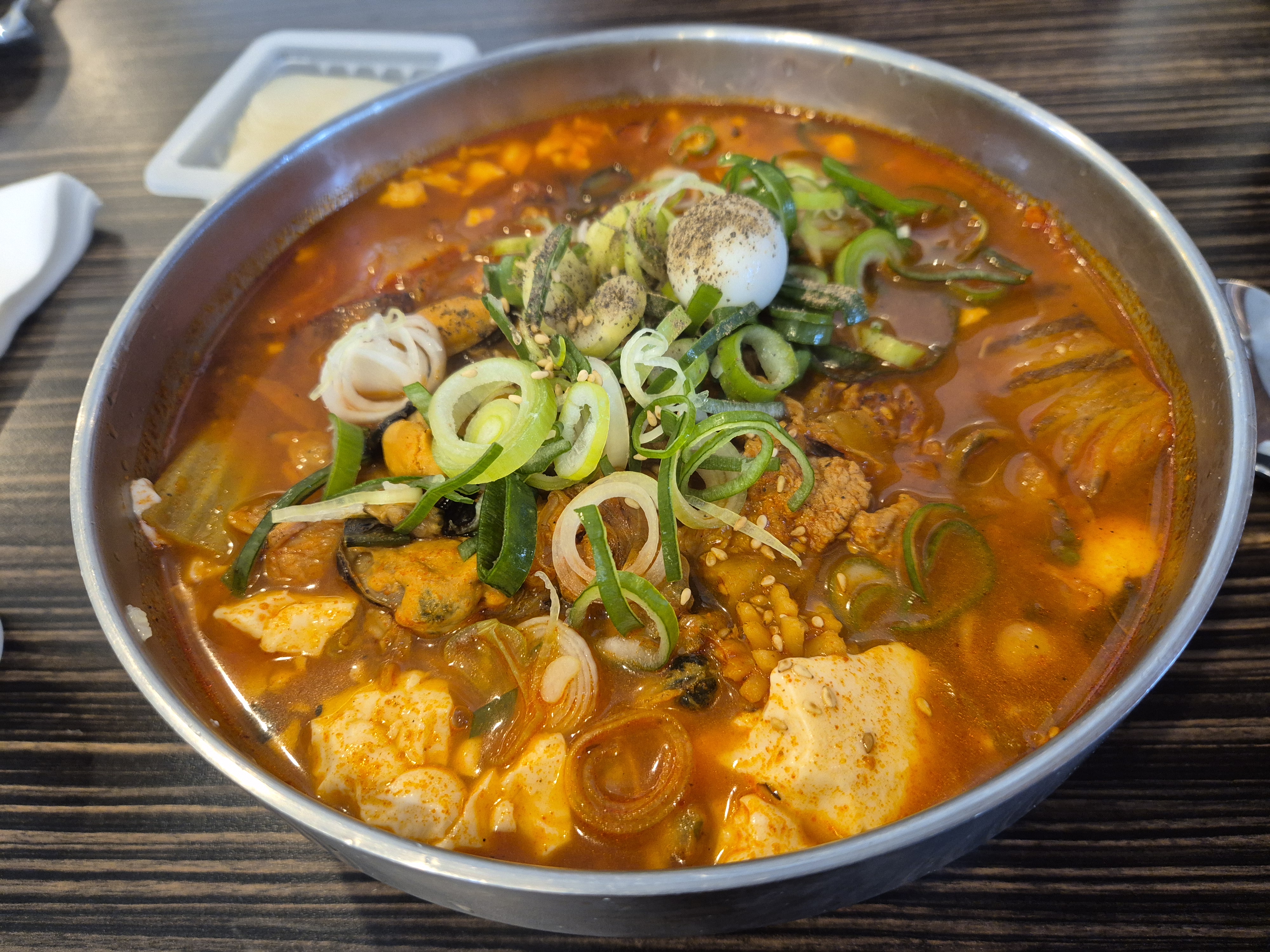 - 순두부의 부드러움과 홍합과 오징어 고기를 비롯하여 다양한 종합 고명이 포함되어 있어 면과 함께 먹는 재미를 준다.