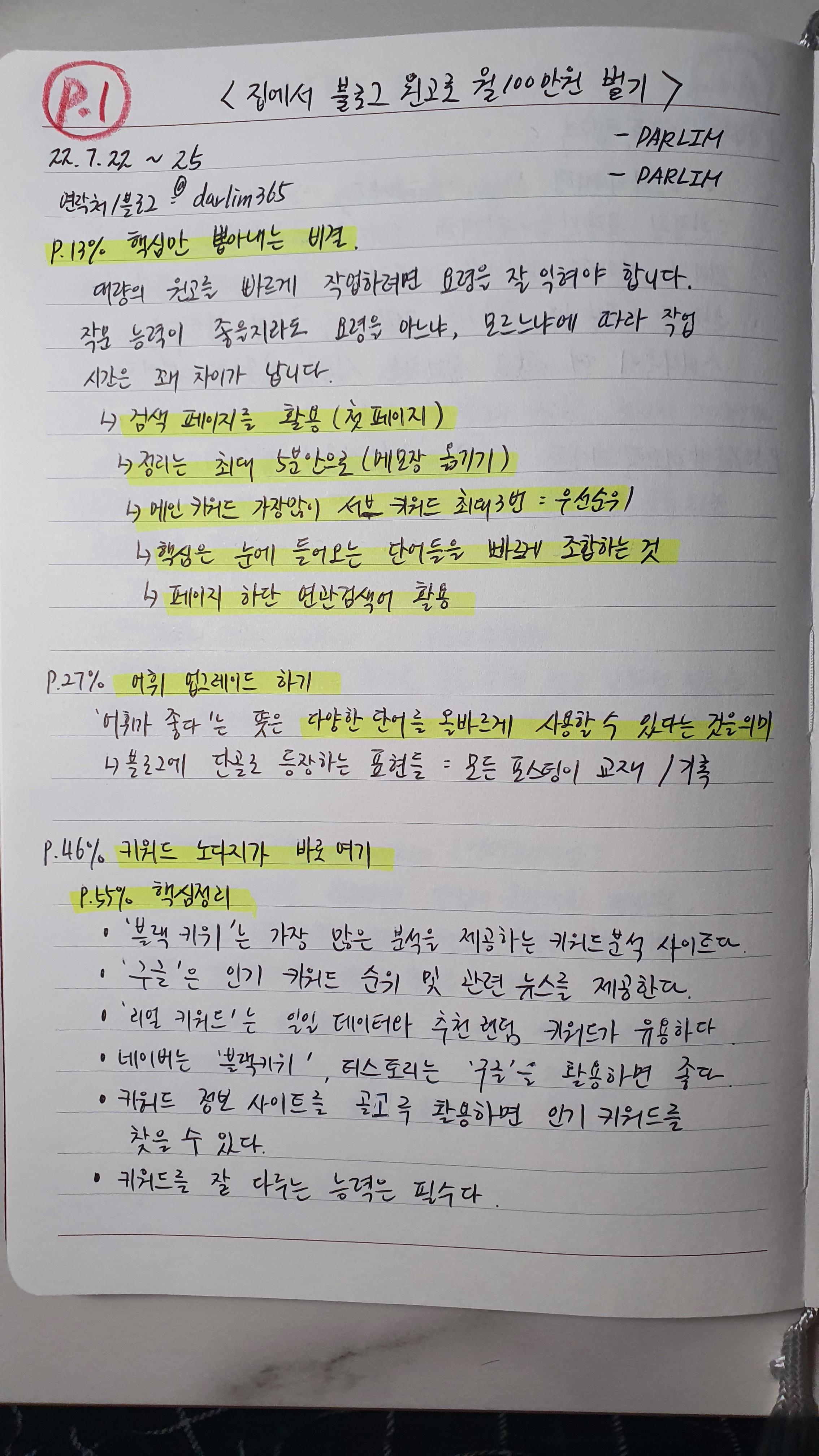 -검색 페이지를 활용(첫 페이지) ->정리는 최대 5분안으로(메모장 옮기기)-> 메인 키워드 가장많이 서브 키워드 최대3번 : 우선순위 -> 핵심은 눈에 들어오는 단어들을 빠르게 조합하는 것 -> 페이지 하단 연관 검색어 활용