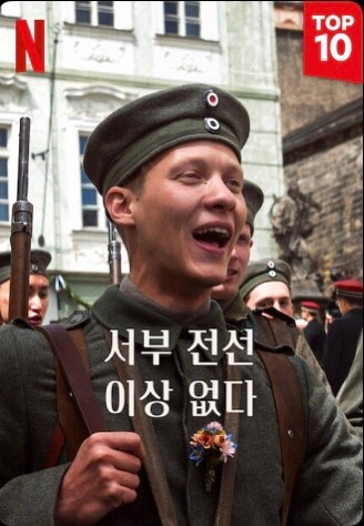 넷플릭스에서 순위권에 독일영화가? 싶은 마음에 자세히 찾아보니 독일의 유명한 소설 서부전선 이상없다를 원작으로 넷플릭스에서 지원한 영화였다. 손이 가는 영화가 없었던 넷플릭스에서 오랜만에 손이가는 영화로 보기 시작하였다.