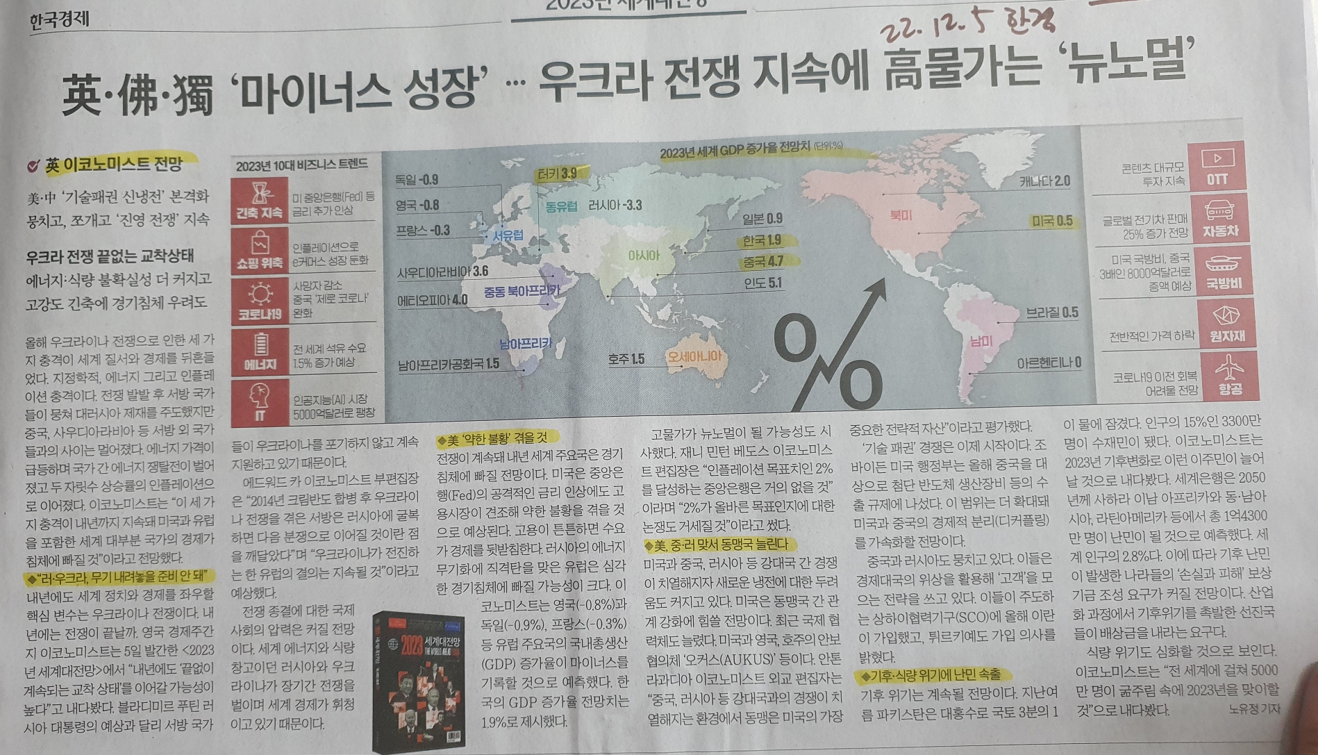 2023년 세계 GDP 증가율 전망치 / 10대 비지니스 트렌드 #2023세계대전망