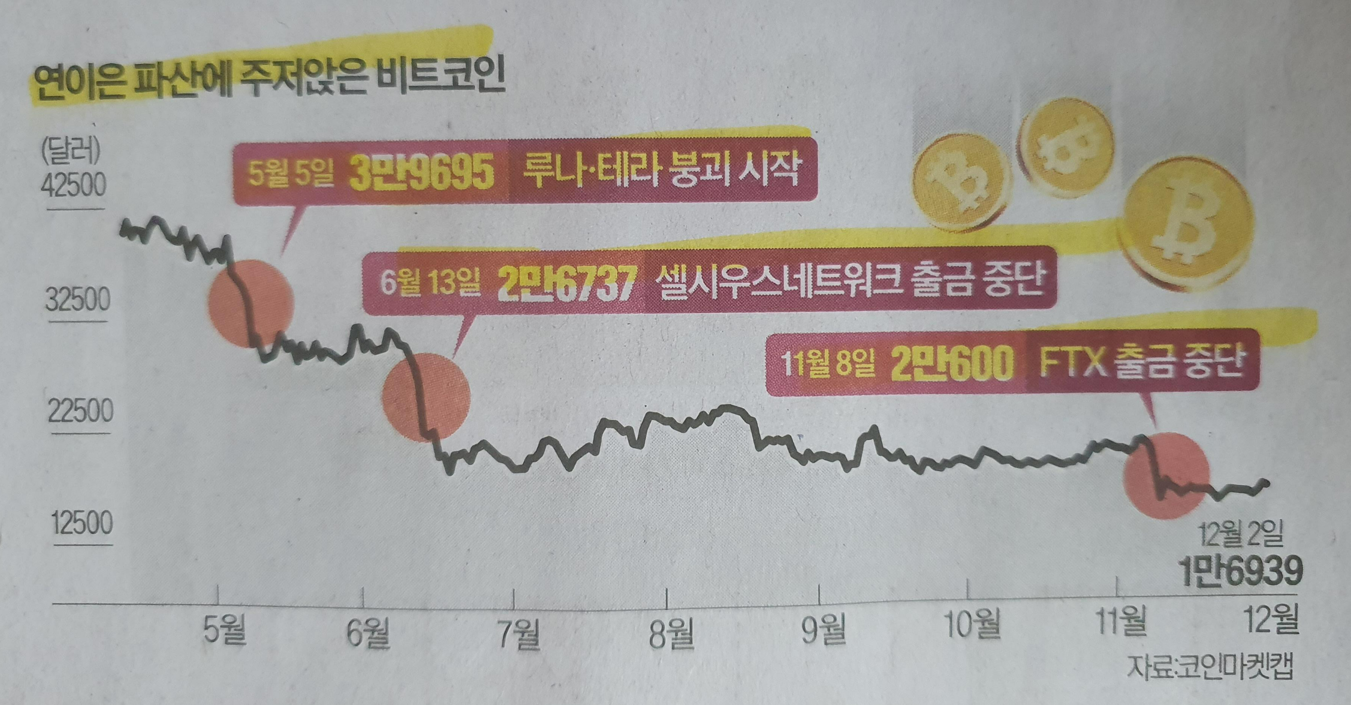 Comment) 루나-테라 붕괴 시작 3만 9천 달러 - 셀시우스네트워크 출금 중단 2만 6천 달러 - FTX 출금 중단 2만 달러