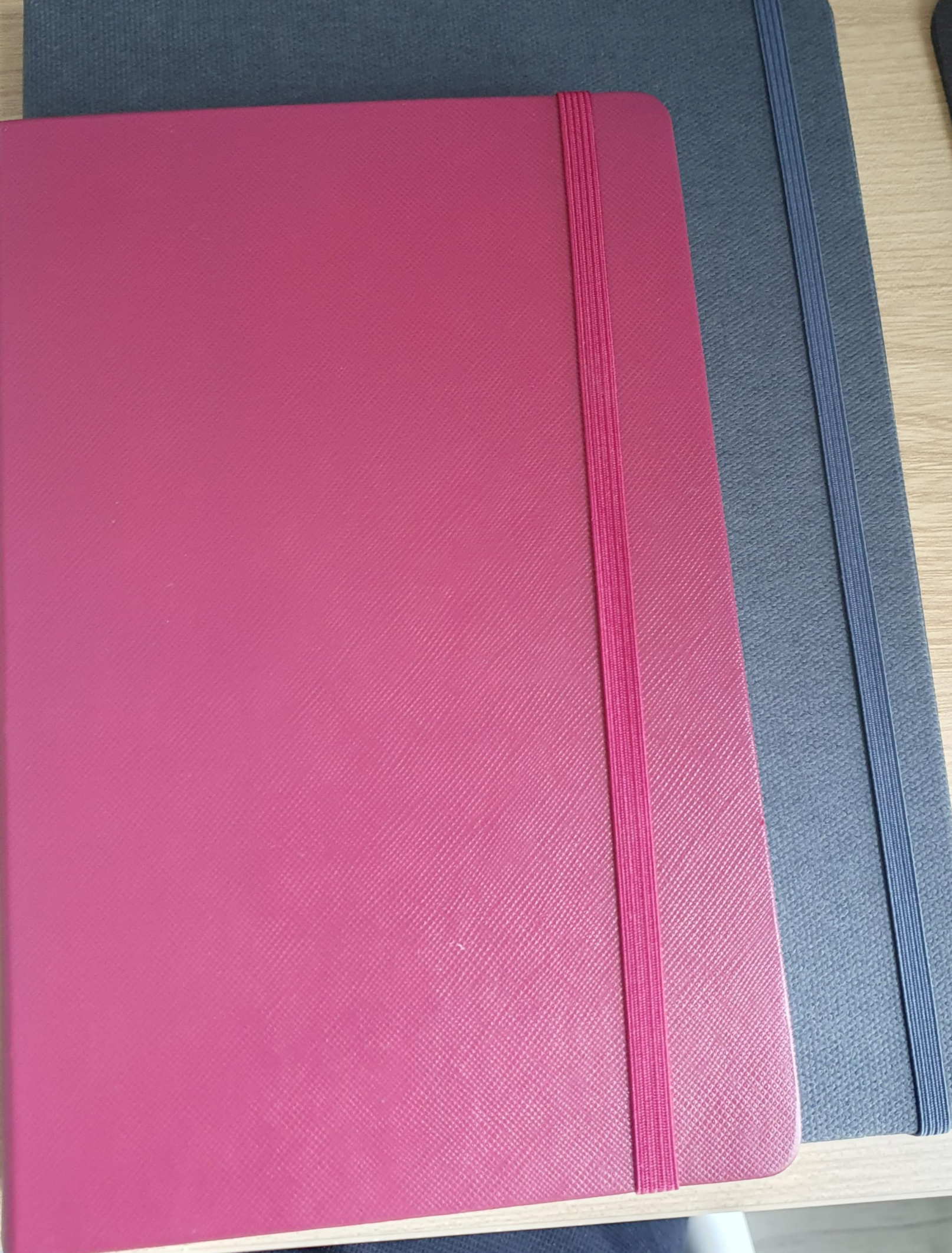 사진 상 2022년의 프리즘 A5 다이어리와 비교하여 사이즈 면에서 1.5배 정도 큰 사이즈다. 그만큼 휴대성은 떨어지지만 공간적인 필기 공간은 확실히 늘어났다.