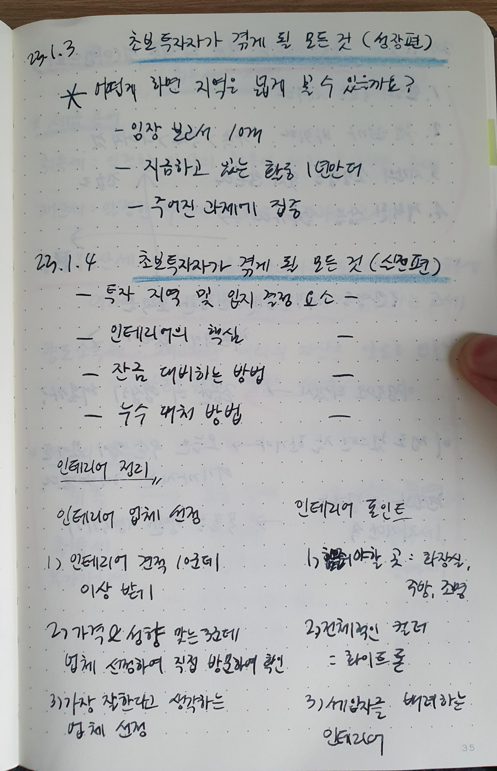 -투자 지역 및 입지 결정 요소 / 인테리어 핵심 / 잔금 대비하는 방법 / 누수 대처 방법
