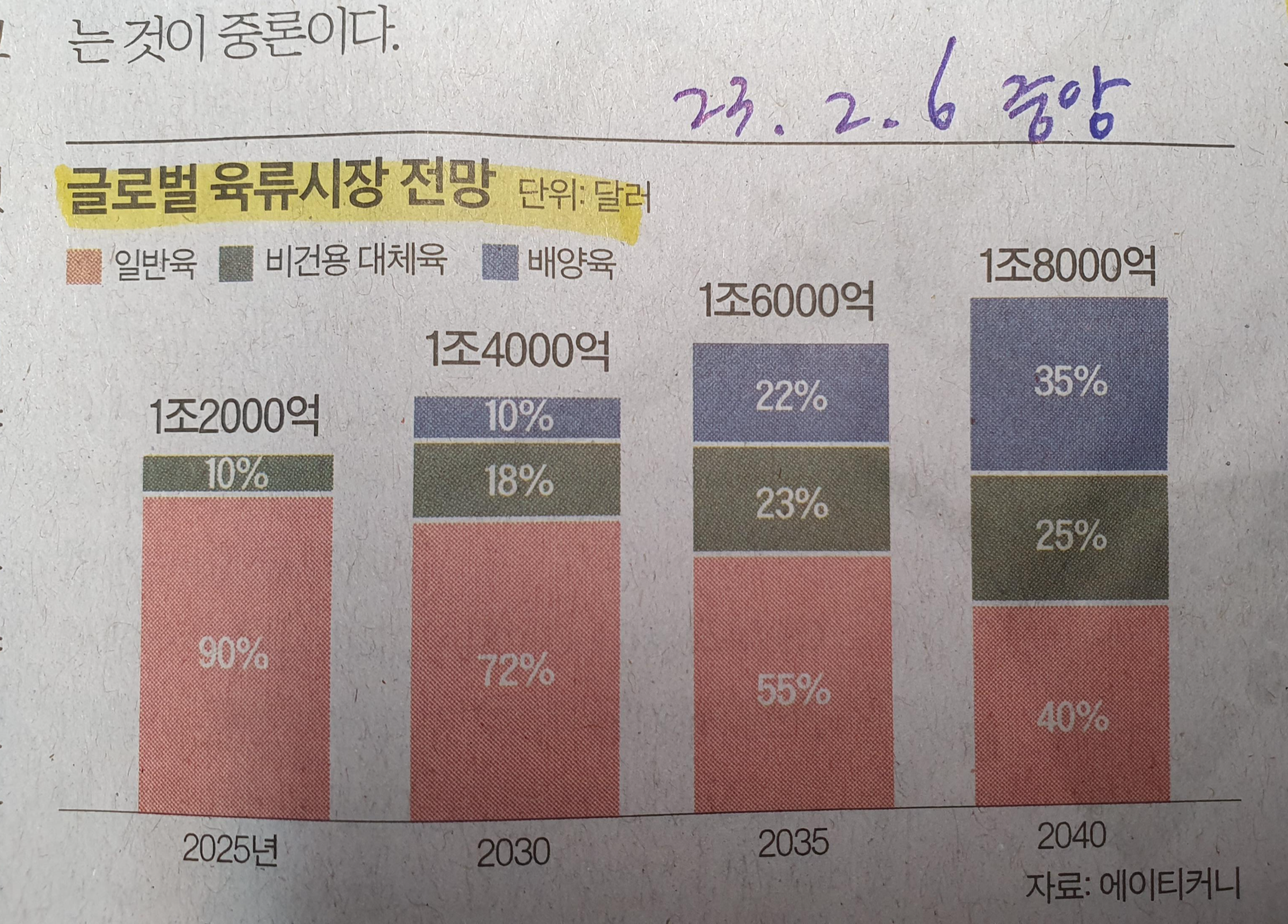 일반육의 비중은 2025년 까지도 90프로를 차지하지만 2040년 예상은 40프로까지 줄어들 전망