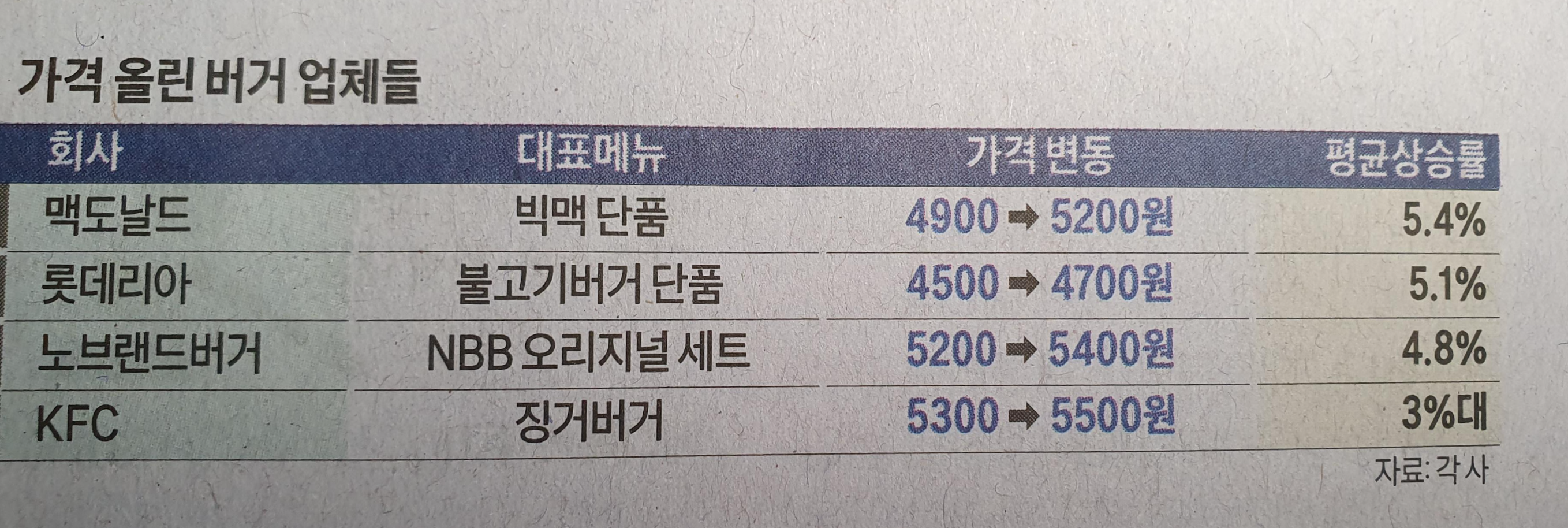 -맥을 비롯한 큰 브랜드 햄버거의 가격 상승으로 눈치보단 맘스터치, 버거킹 등의 다른 버거 업체들도 가격을 추가 상승할 예정