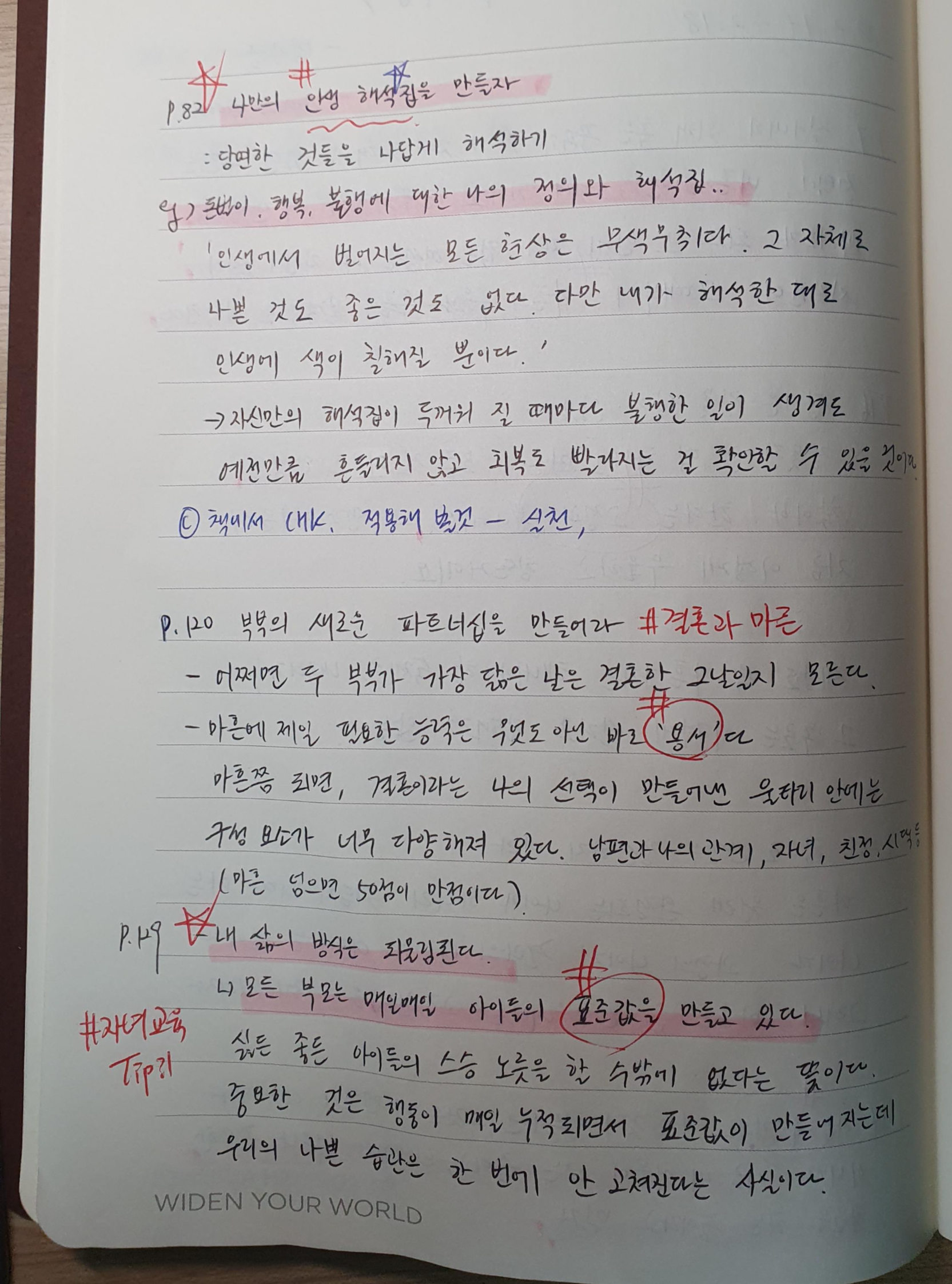 %힌가지를 내 생활에 적용한다면? 우선적으로 나만의 인생 해석집을 하나씩 정리해보는 시간을 가져보자.