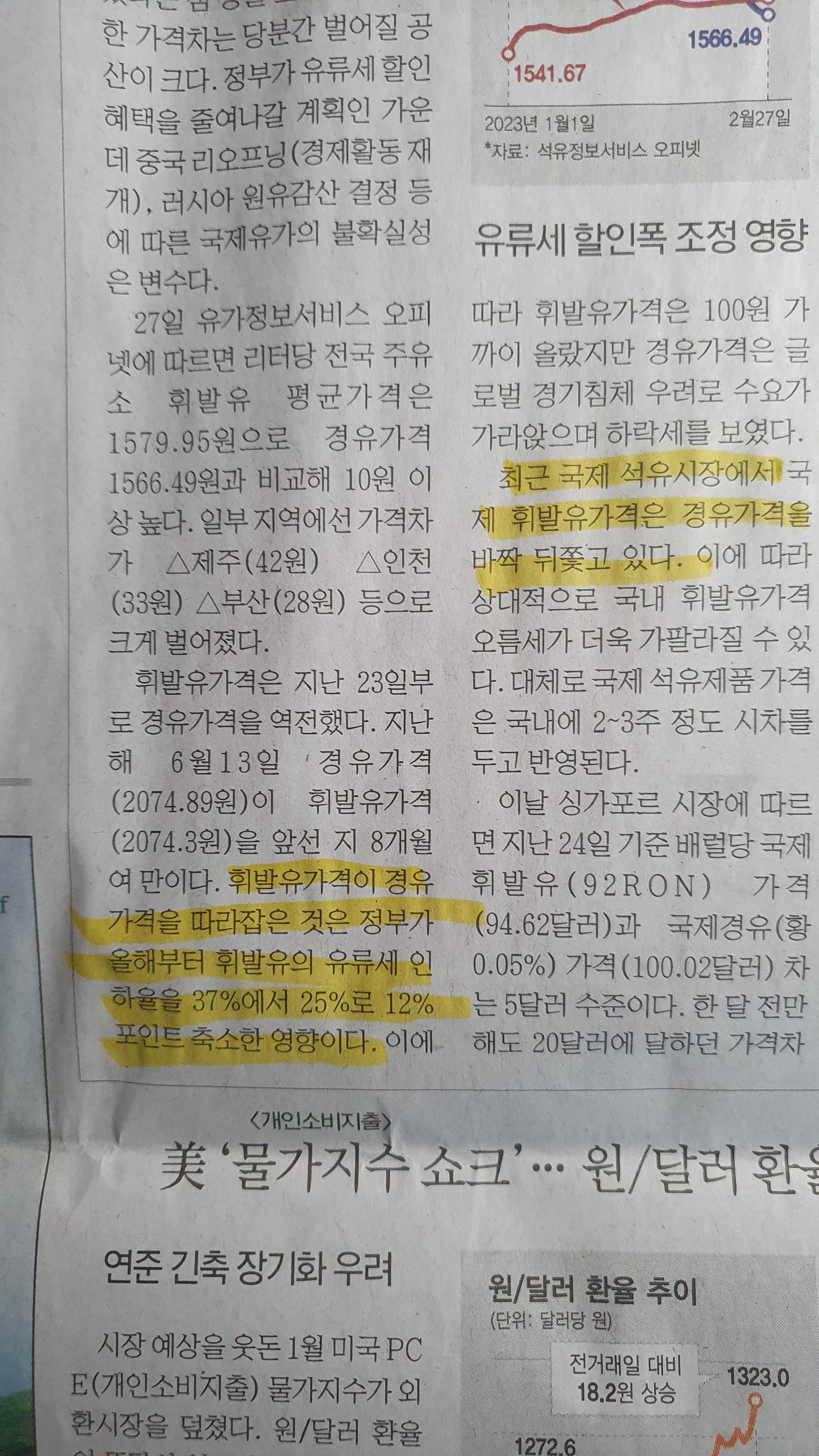 즉, 세계적인 경향이라기보단 한국 시장의 휘발유 가격 유류세 인하폭이 줄어들어 휘발유가 비싸진 슬픈 이야기였다.