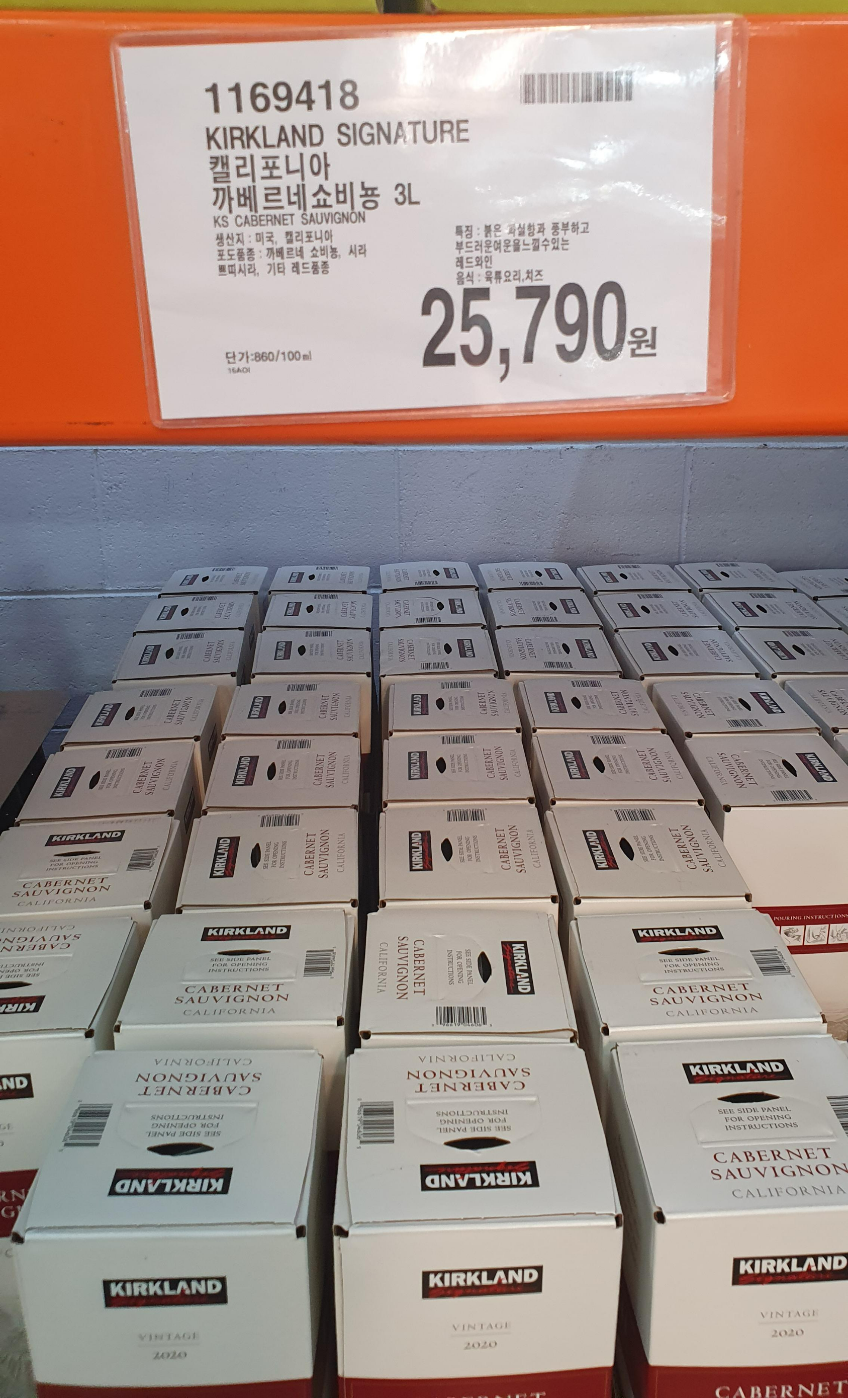 2) 커클랜드 캘리포니아 까베르네쇼비뇽 3L - 25,790원