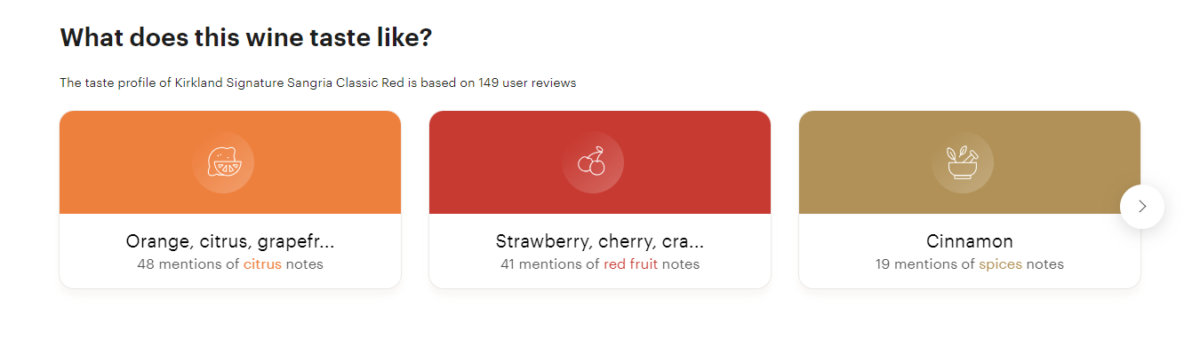 스페인산, 디져트용으로도 좋은 상그리아, 맛은 과실이 포함되기에 오렌지, 시트러스, 체리, 베리, 등과 함께 시나몬향이 느껴지는 와인.