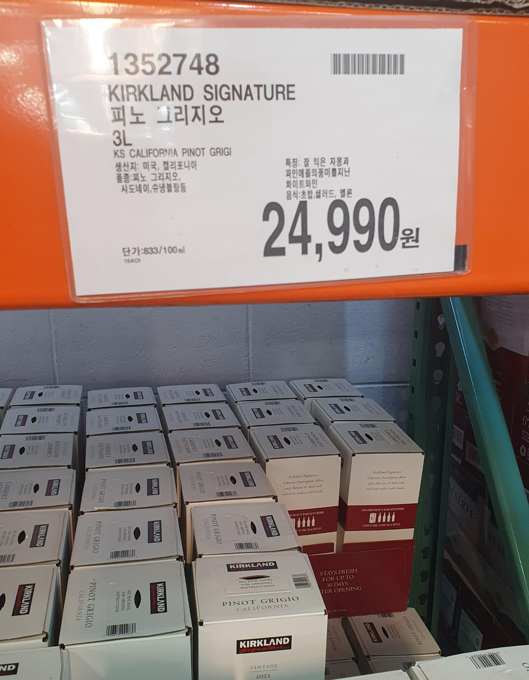 3) 커클랜드 피노 그리지오 3L - 24,990원