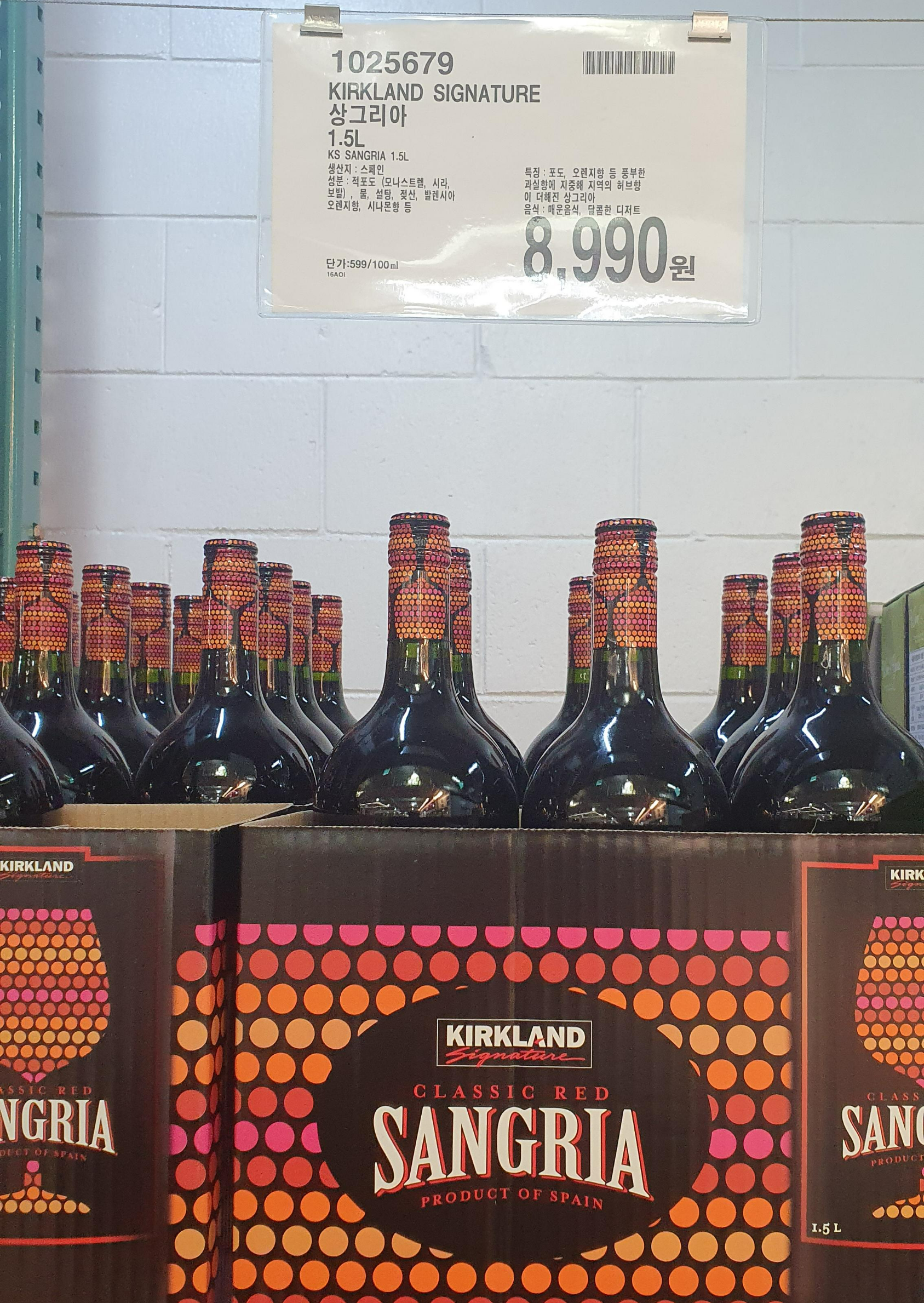 1) 커클랜드 상그리아 1.5L - 8,990원