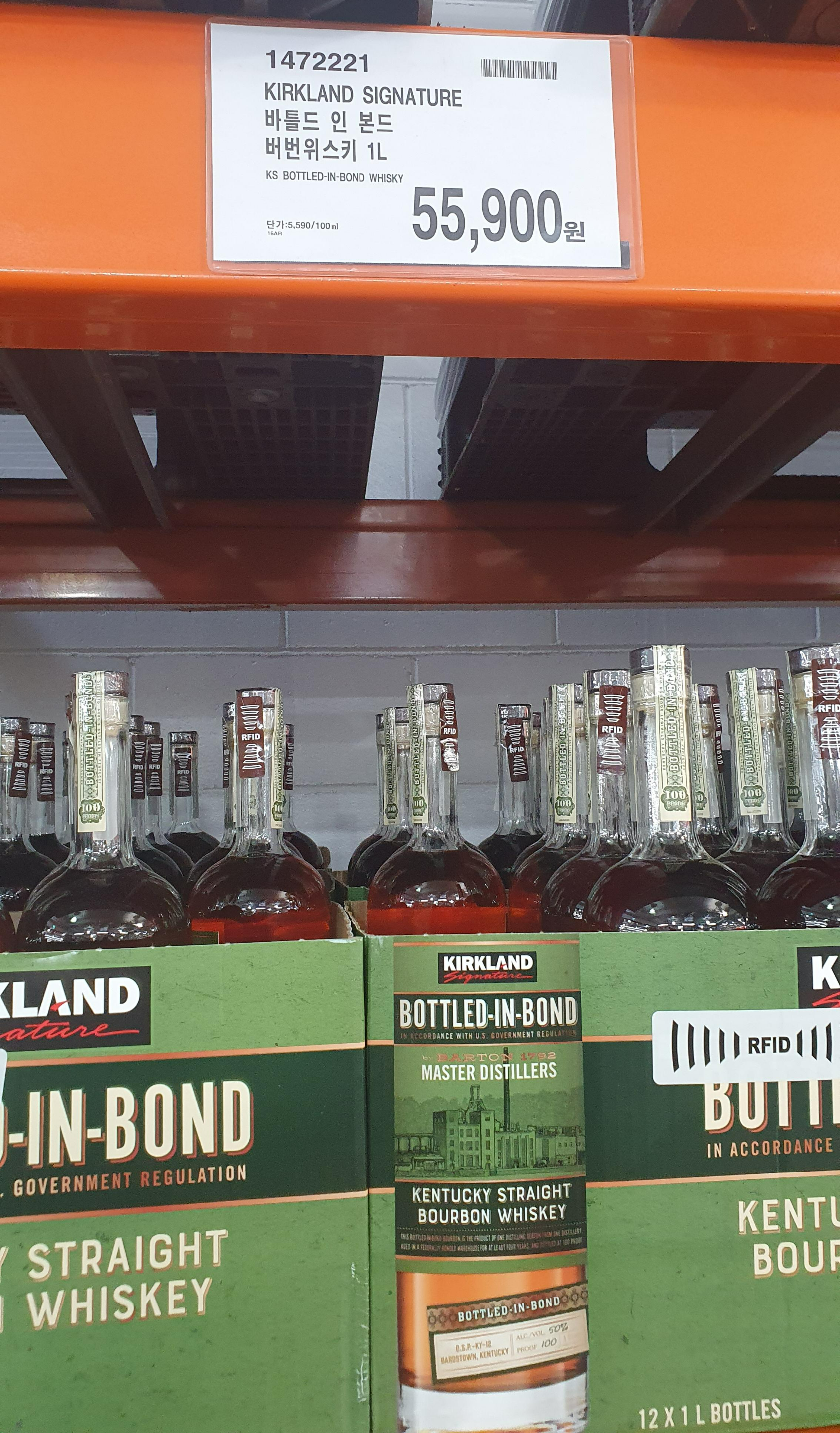 5) 커클랜드 바들드 인 본드 버번위스키 1L / 55,900원