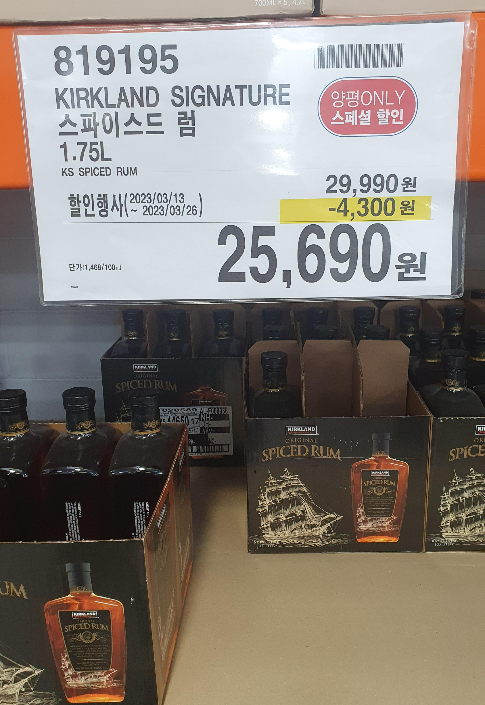 3) 커클랜드 스파이스드 럼 1.75L / 23,690원