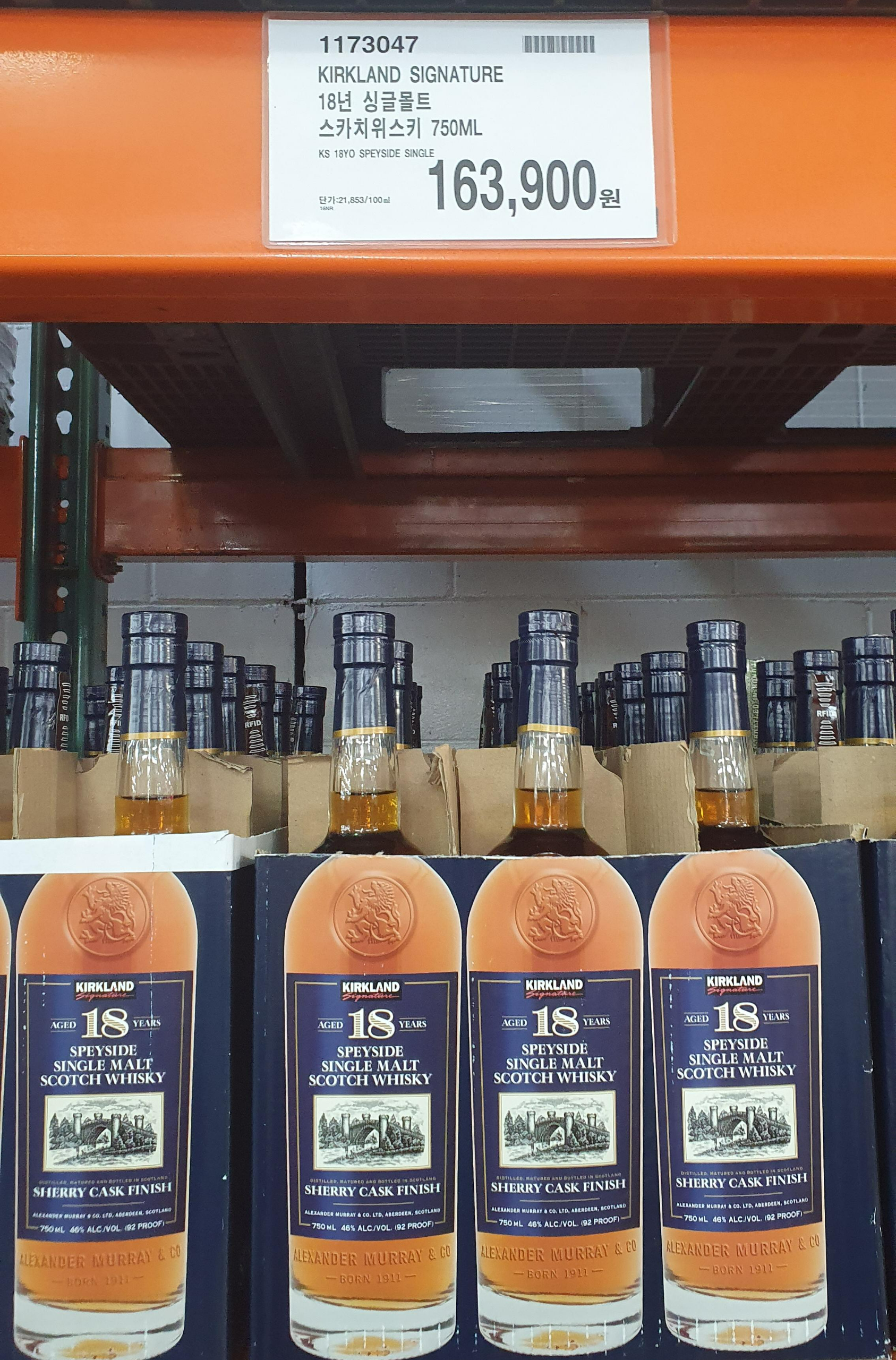 6) 커클랜드 18년 싱글몰트 스카치위스키 750ML / 163,900원