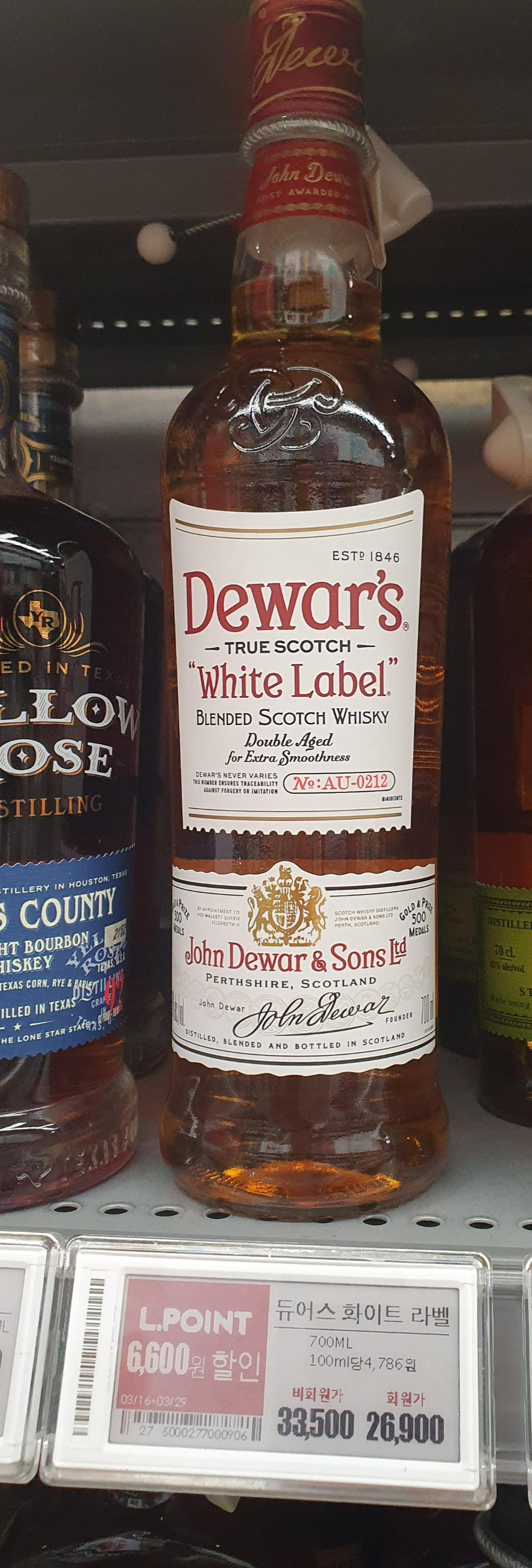 듀어스 화이트 라벨 700ML / 26,900원