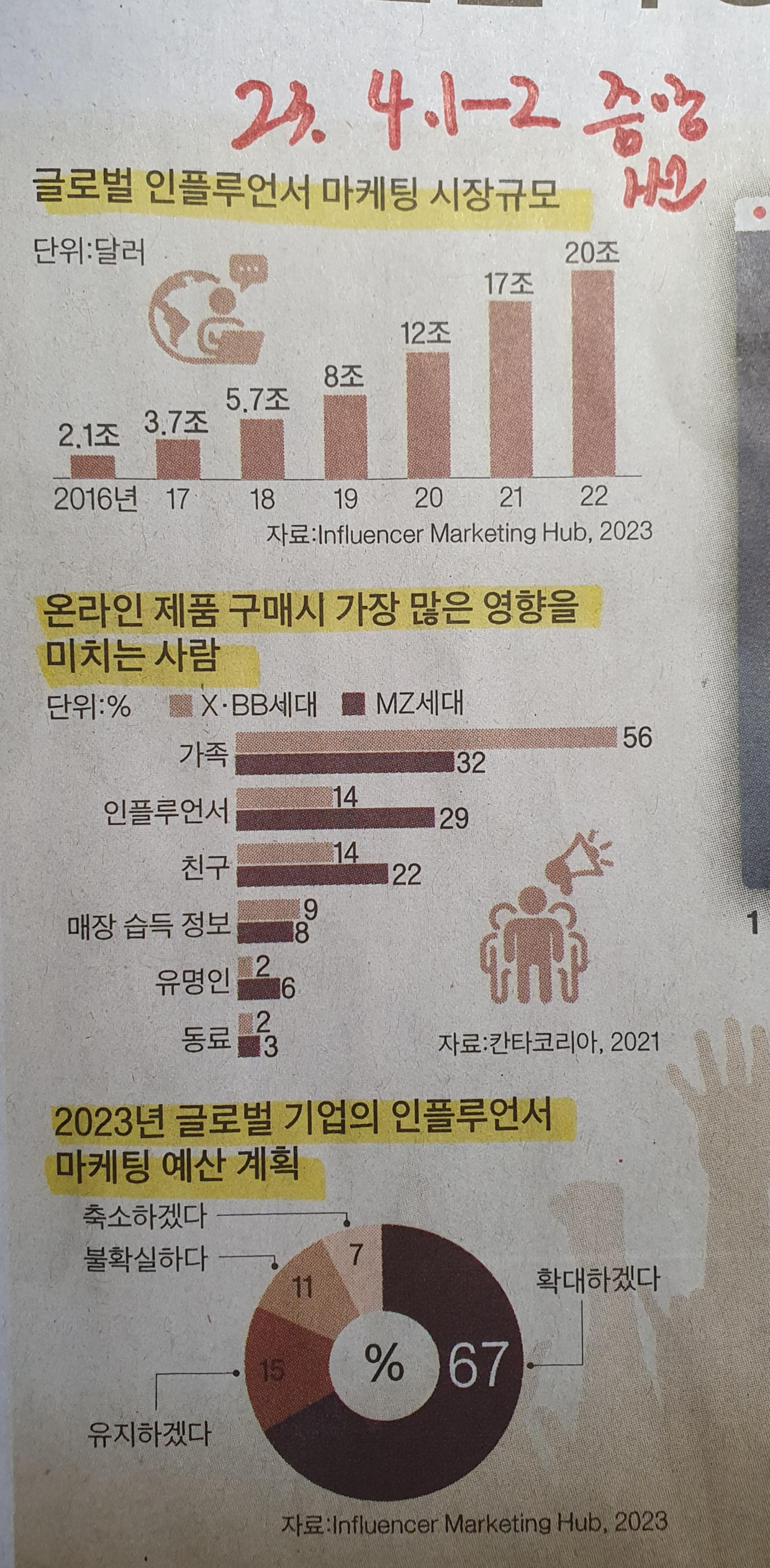 -기업의 2023년 글로벌 기업의 인플루언서 마케팅 예산 계획 67% 확대하겠다.