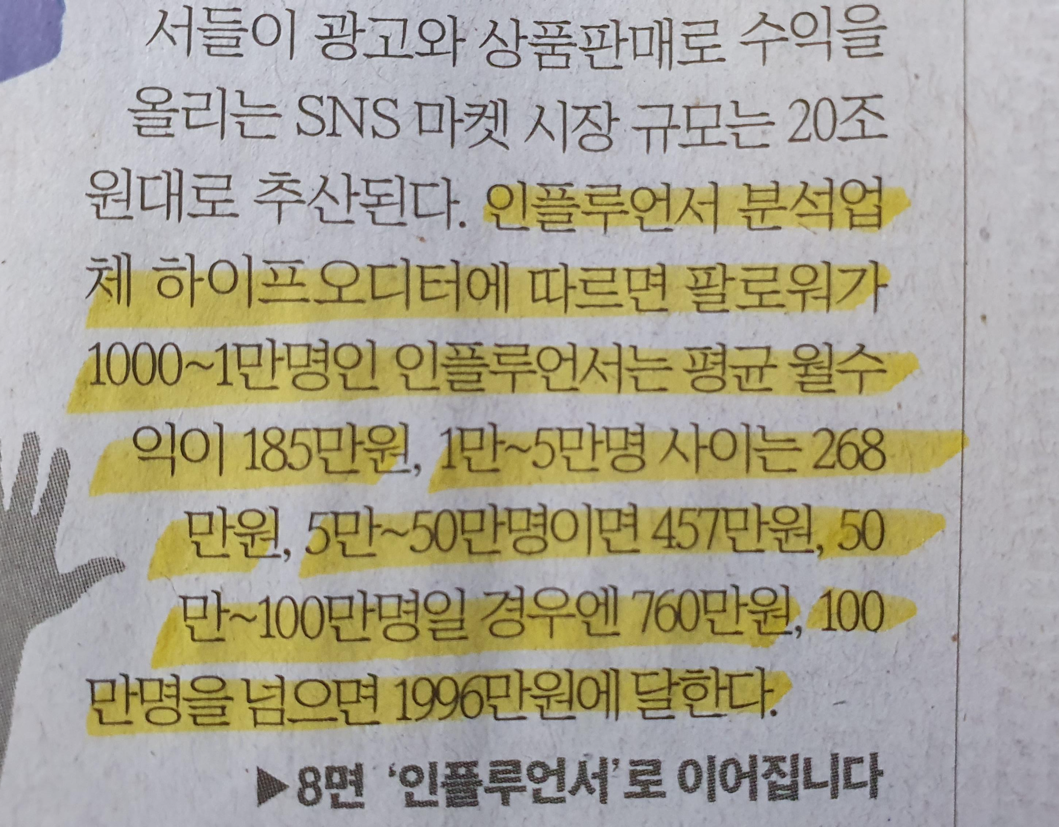 -팔로워 1천-1만 185만 원 / 1만-5만 268만 원 / 5만-50만 457만 원 / 50만-100만 760만 원 / 100만 이상 1996만 원