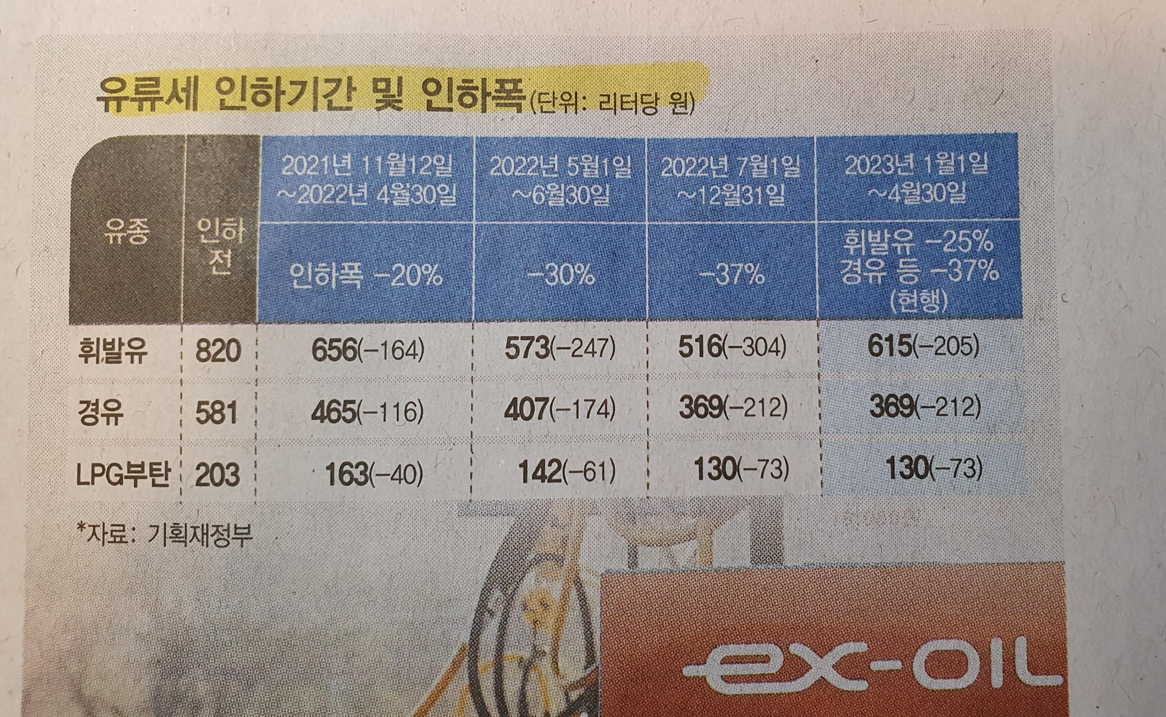 -정보는 이달말로 종료되는 유류세 인하 휘발유 25%, 경유 37% 조치의 연장과 인하폭을 두고 논의 중