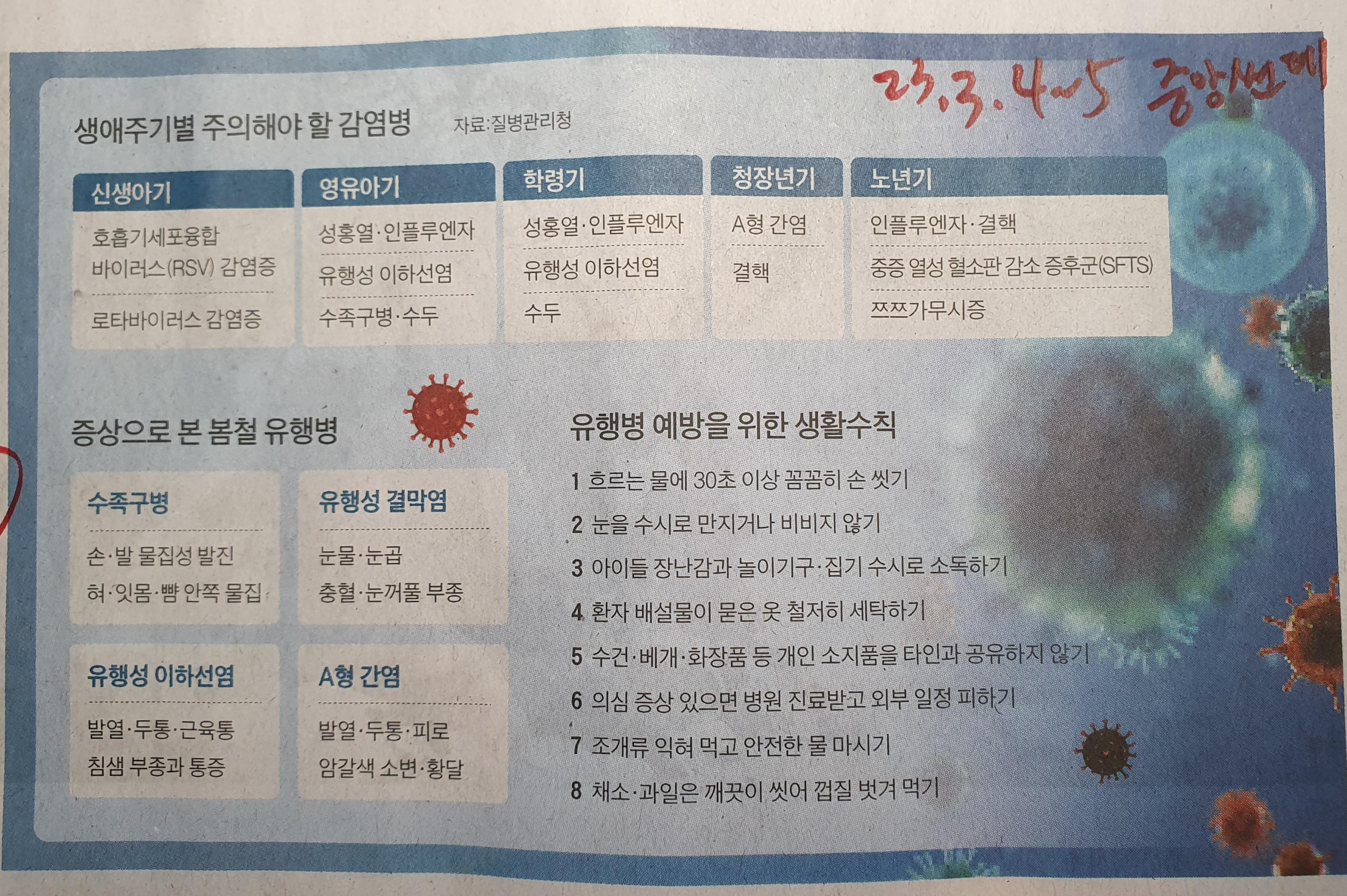영유아기 : 성홍열, 인플루엔자, 유행성 이하선염, 수족구병, 수두