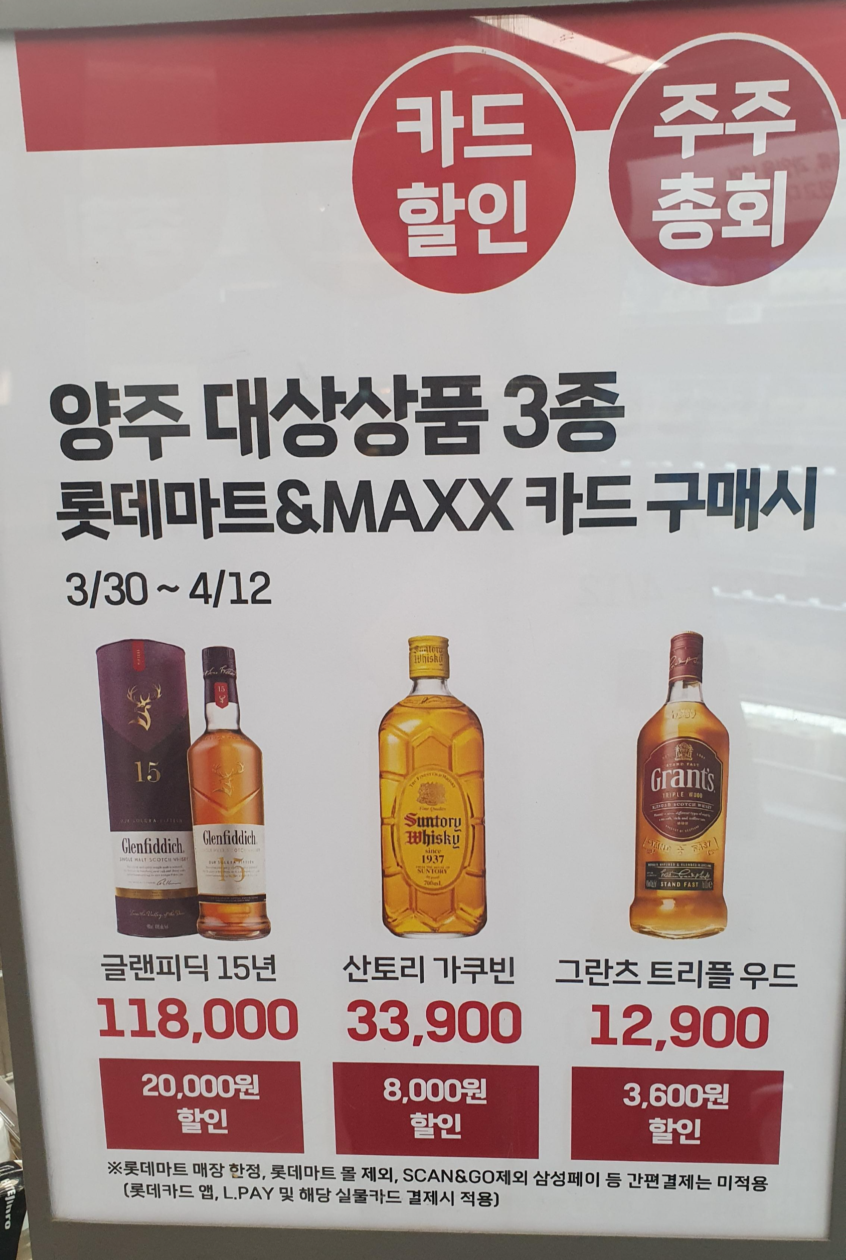 산토리 가쿠빈의 이미지는 역시나 하이볼의 클래식한 일본 위스키의 이미지. 매대에 진열을 하면 이틀 내에 기본 물량은 매진되는 것을 볼 수 있었다. 응? 이렇게 인기가 있다고 적당한 가격과 친숙한 브랜드 이미지 때문인지 수요가 높은 위스키라는 것을 알 수 있었다. 장사한 두 번 하나 역시나 롯데마트에서는 한 번에 모든 물량을 내놓지는 않고 2-3일 간격으로 물량을 채워 넣는다. 인생은 타이밍 방문 시 보이면 픽픽 하시길!!!!