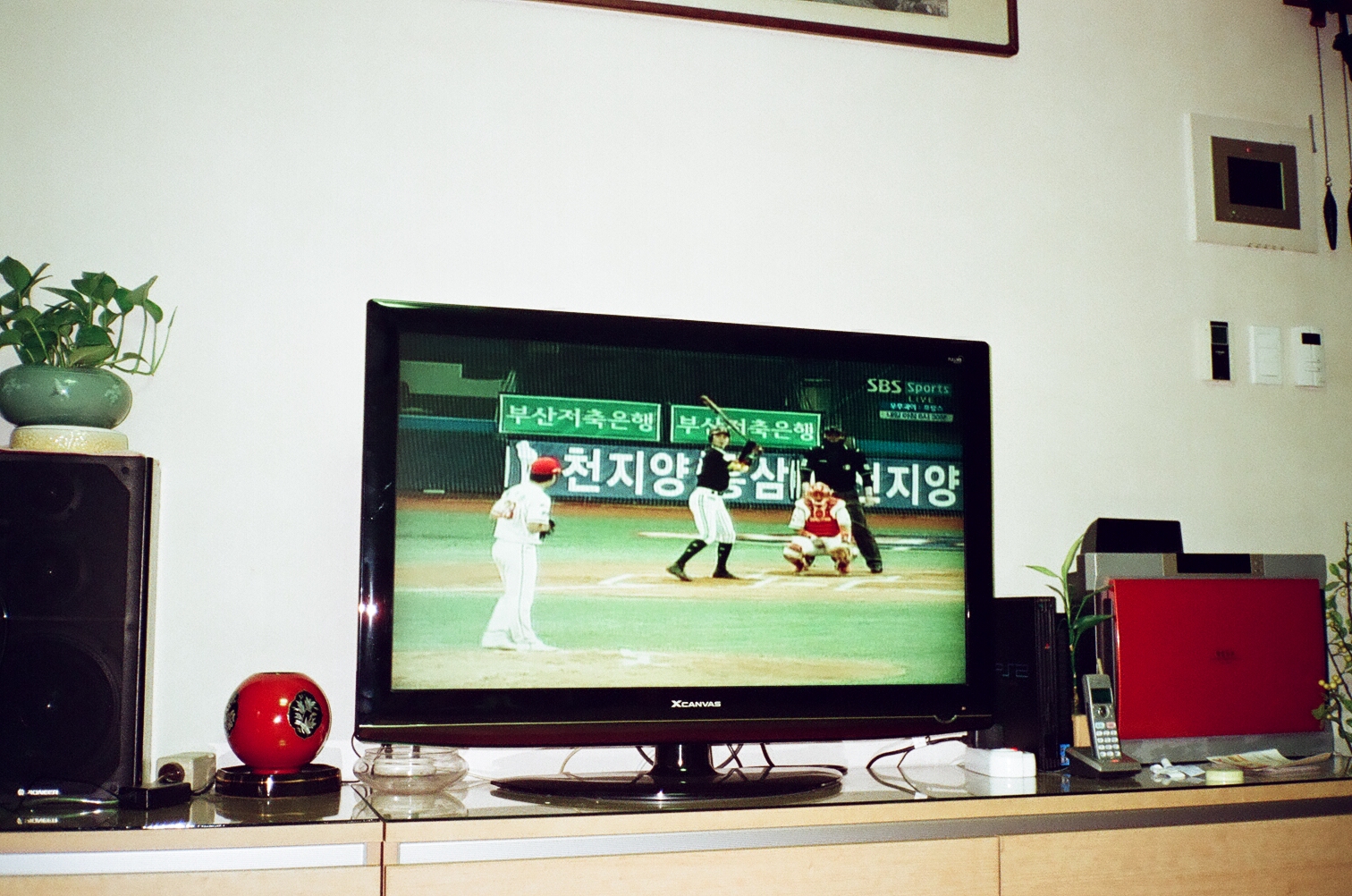 지금으로 보면 컴퓨터 모니터 수준의 티비 사이즈 43인치? 플레이스테이션 2, 전화기에 아주 빨간 공기 청정기의 디자인 클래식함이 묻어난다.