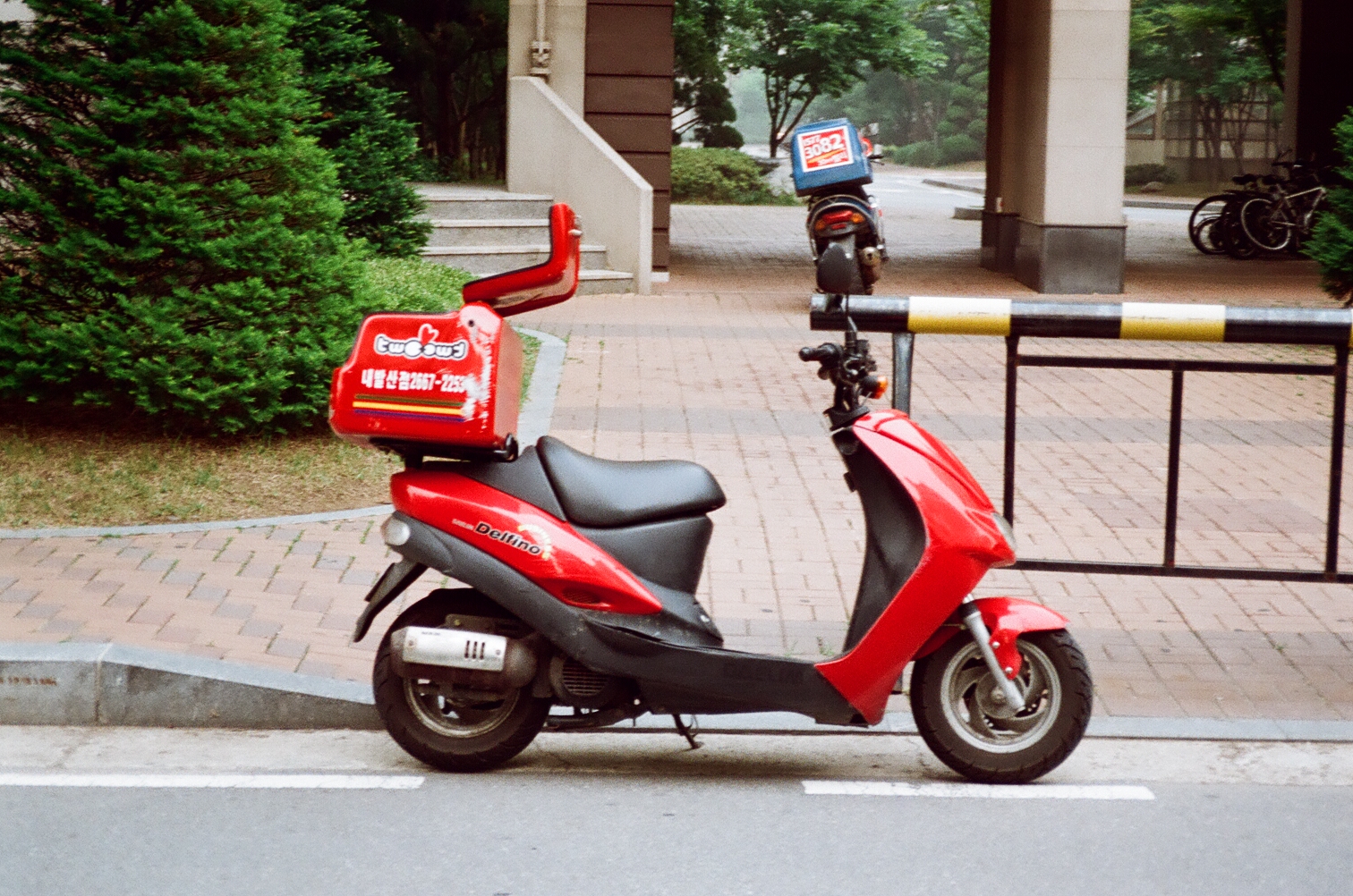 즐거운 쓰레기 분리수거와 투투치킨 배달 오토바이. 주말이여서인지 배달용 오토바이가 아파트네 많았다.