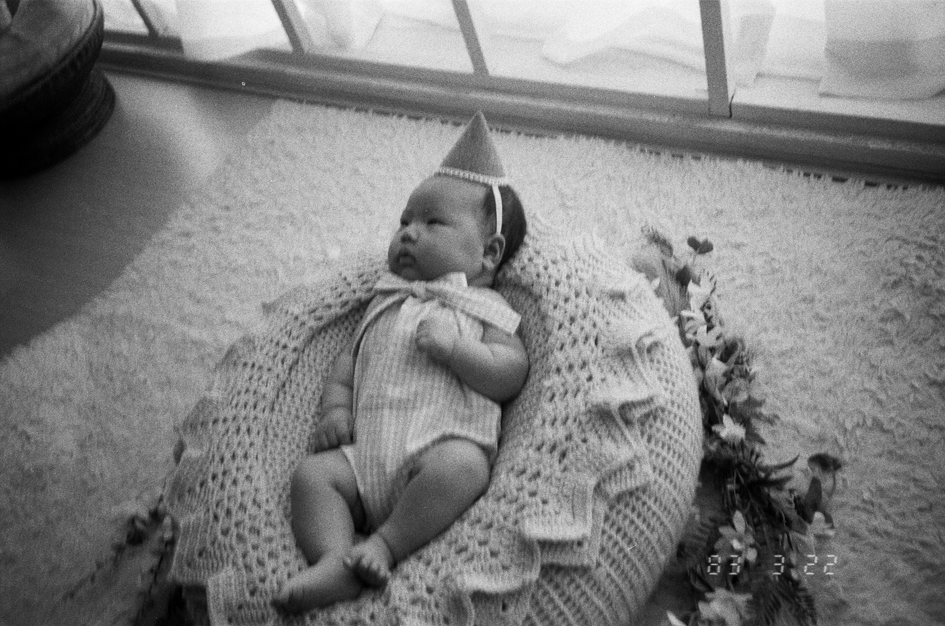 귀여운 꼬깔 모자를 쓴 딸.