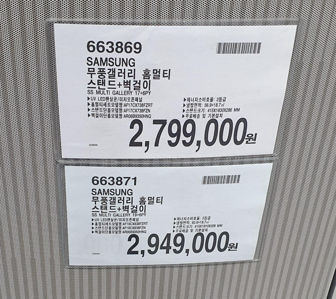 1) SAMSUNG 무풍갤러리 홈멀티 스탠드+벽걸이 663869 : 2,799,000원 17+6PY
