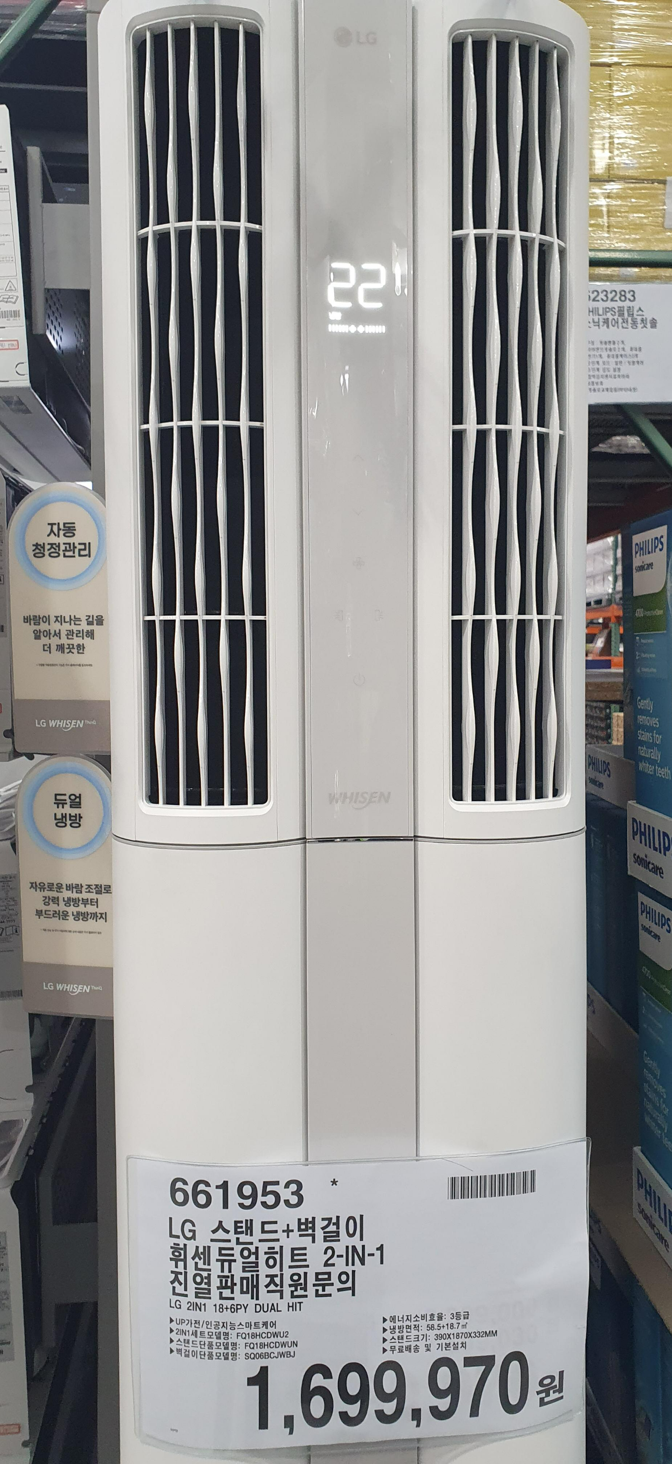 7) LG 엘지 휘센타워2 디럭스 스탠드 + 벽걸이 : 2,449,000 (35만원 할인) / 18+6 PY 663860