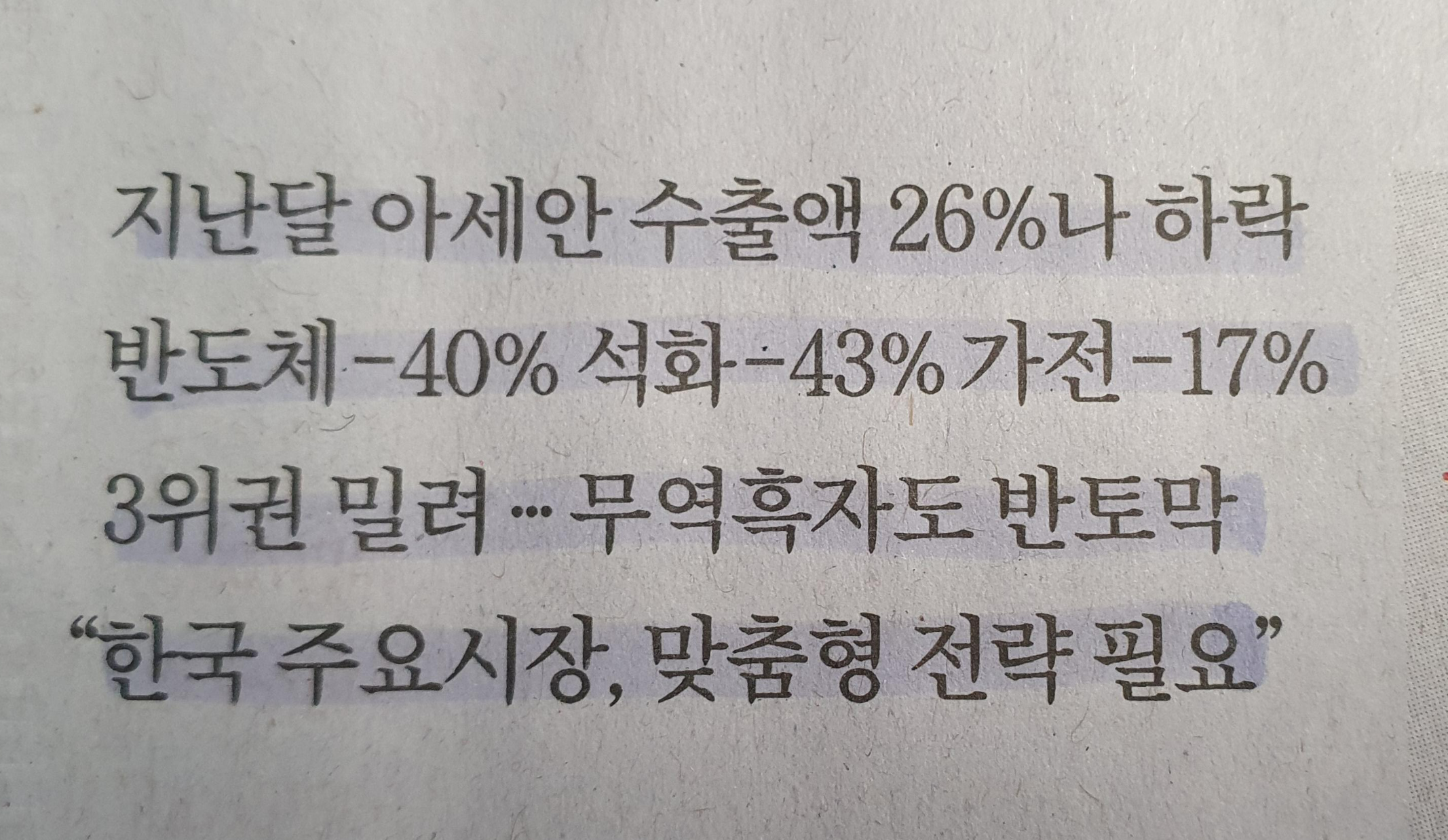 -특히 주력 수출 품목인 반도체, 석유화학, 가전제품 등 모든 산업에서 수출액이 감소함