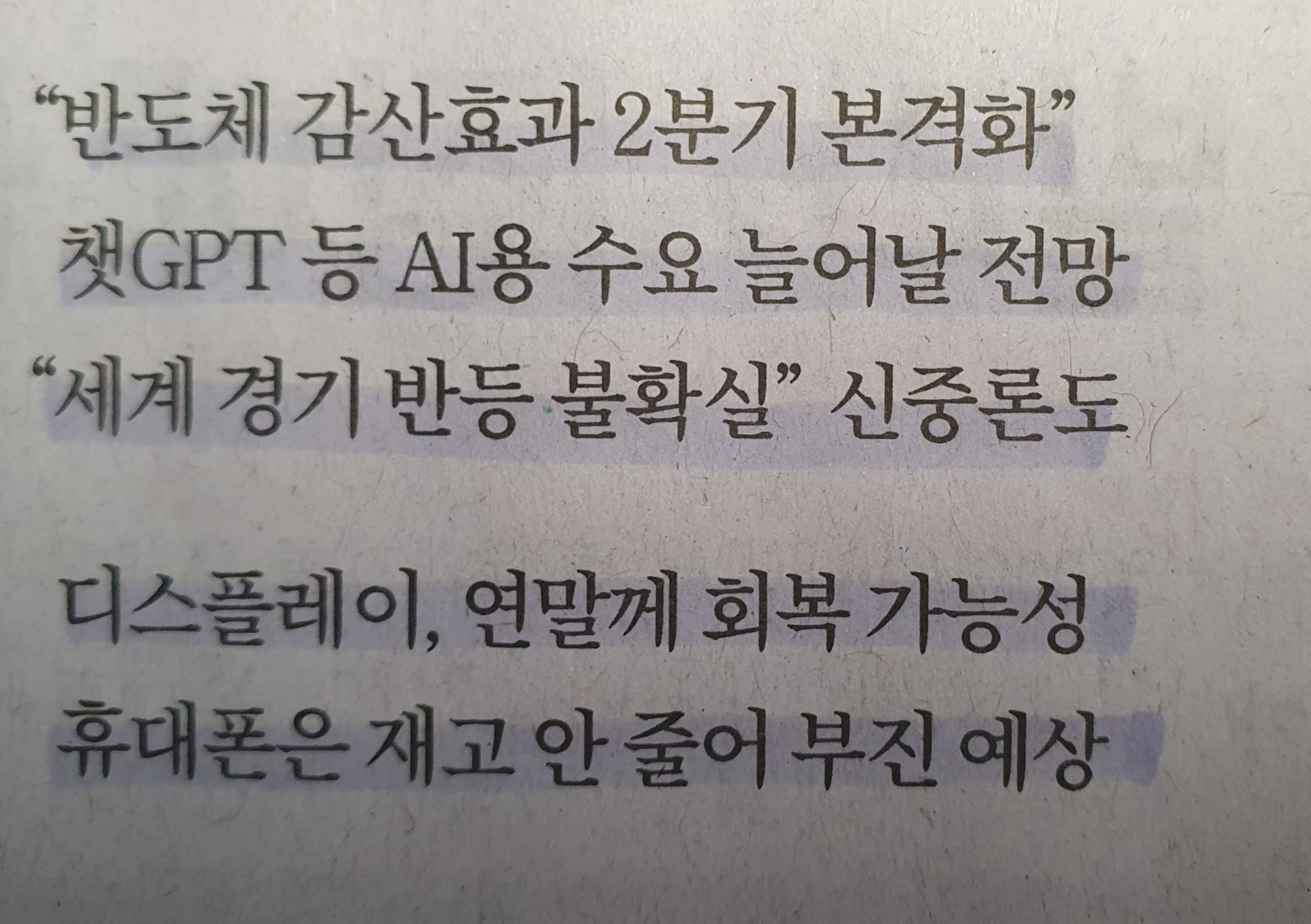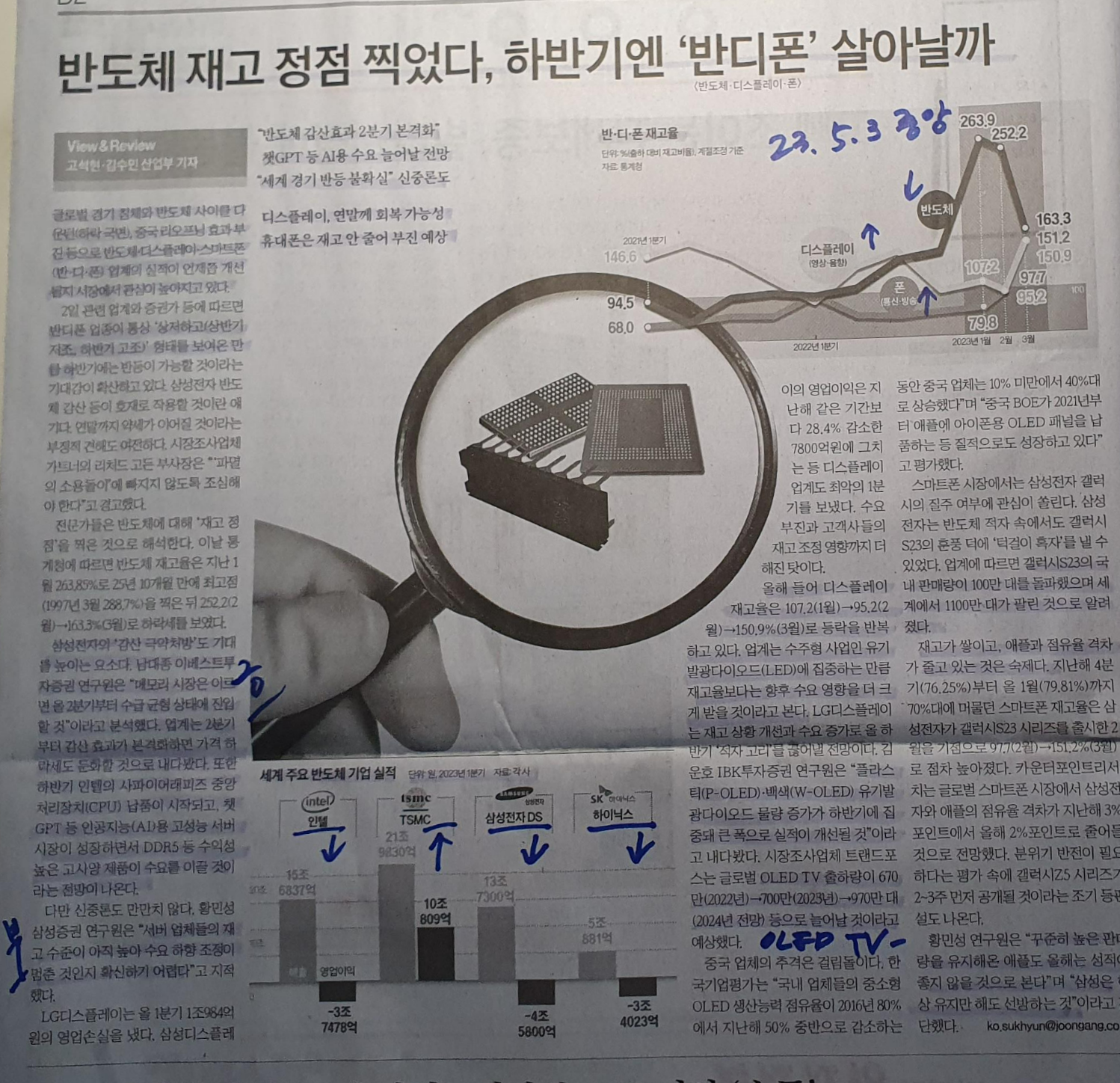 -반도체의 경우 삼성의과 하이닉스 감산효과로 인하여 2분기 안정화가 예상