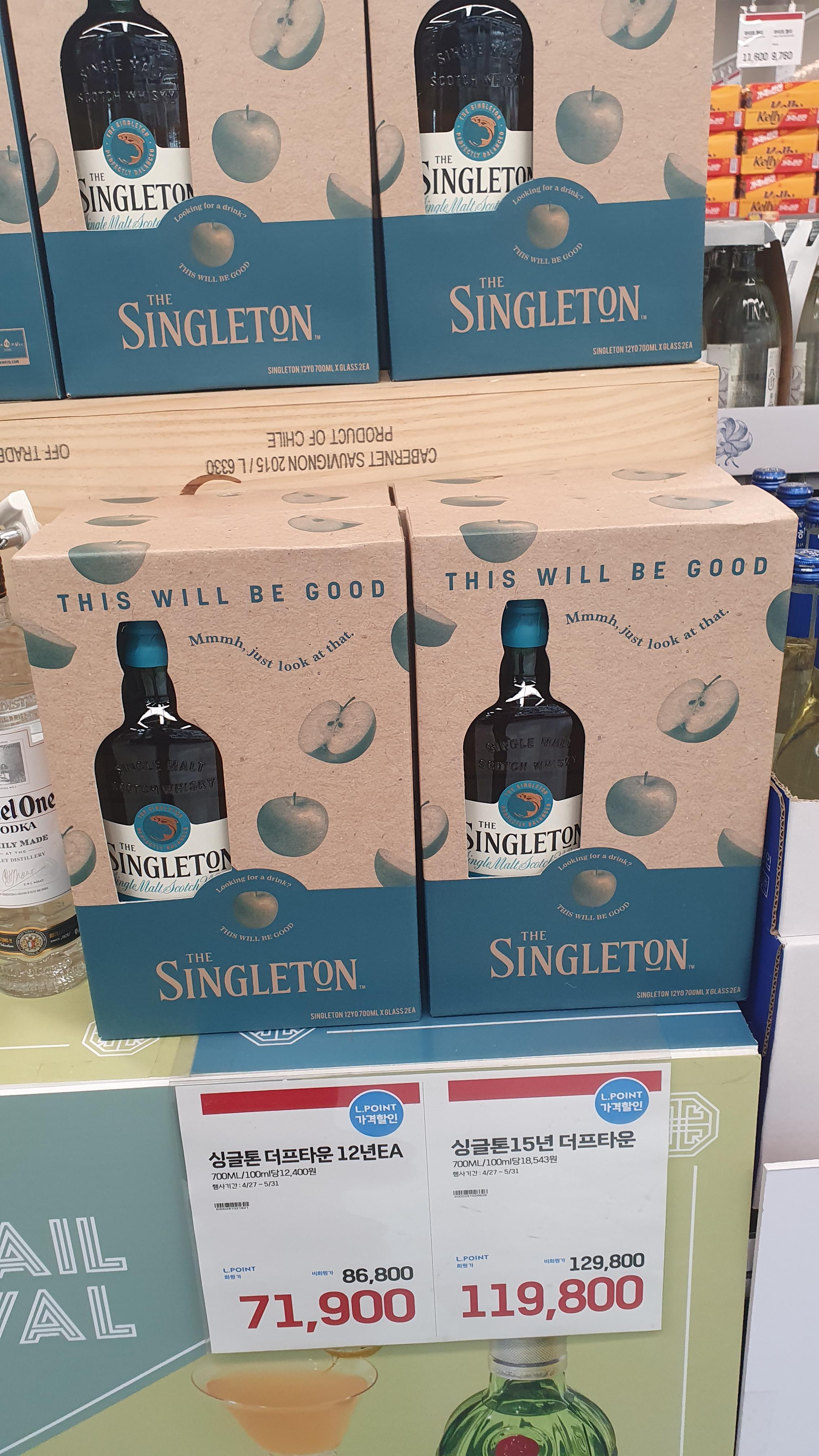 한국에서 판매하는 더프타운 위스키의 대표주자격인 위스키 싱글톤 시리즈. 12년산, 15년산의 숙성된 스코틀랜드 위스키를 할인 가격에 판매중이라 적당한 가격으로 구입원하시는 분들께 추천.