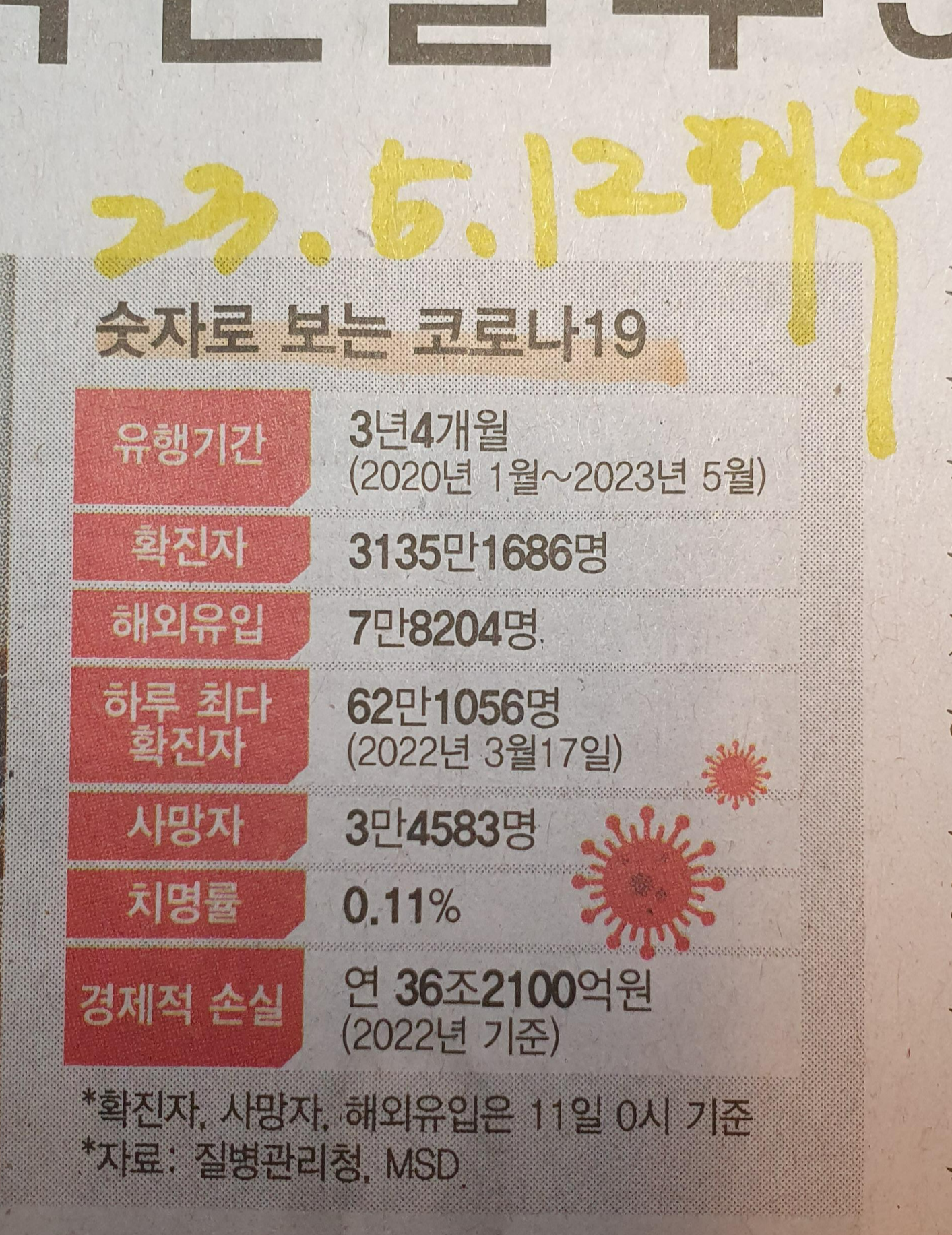 Comment)) 놀랐던 부분은 사망자와 치명률 5천만 인구 중 3만 4천 명은 우리가 합병증이라는 부분을 제외한 정말 순수하게 확인 부분의 사망자만을 보여준다고 생각된다. 적어도 2-3배의 사망자까지 포함되어야 한다 개인적으로 생각되낟. 치명률 0.11%. 적어도 치명적인 상황까지 2년이 넘는 시간 동안 견디어준 지표라고 생각된다.