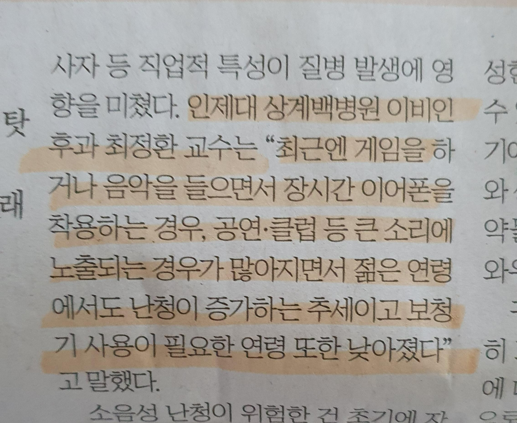 -최근엔 게임을 하거나 음악을 들으면서 장시간 이어폰을 착용하는 경우,