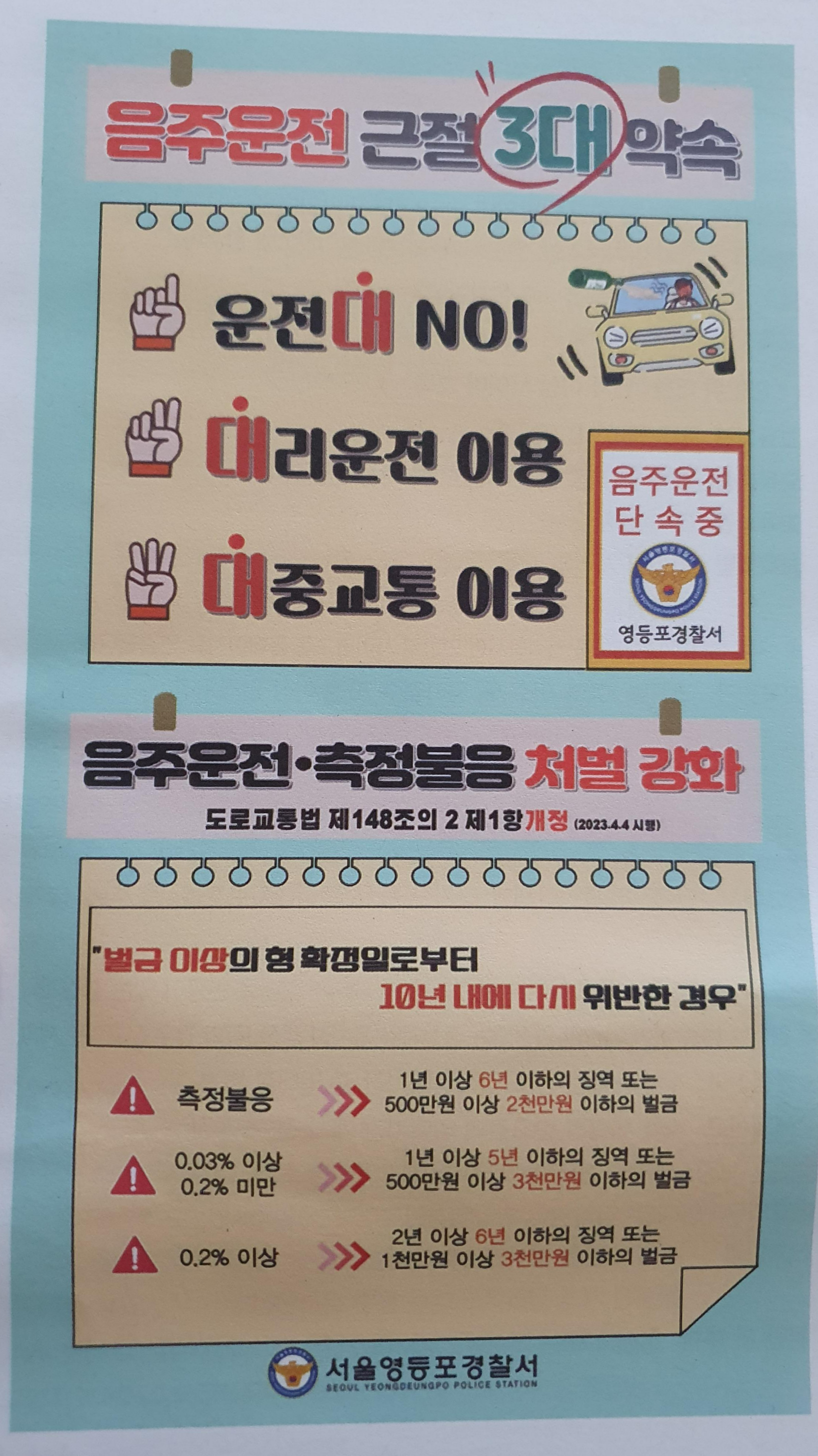영등포구 소식지의 음주운전 근절 3대 약속