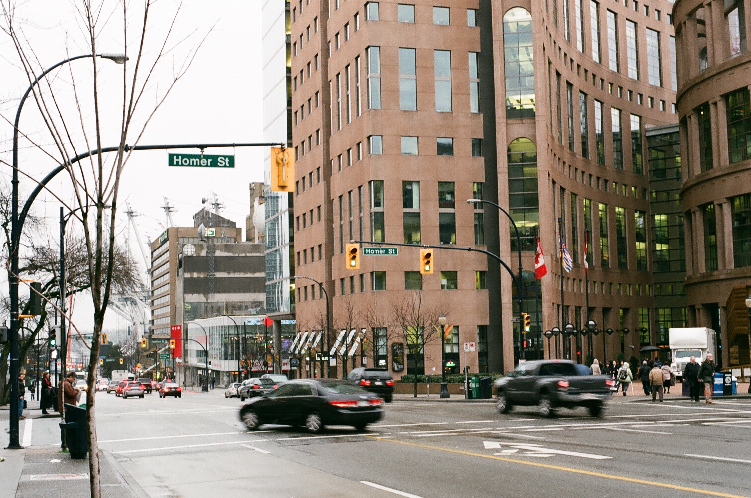 밴쿠버 다운타운 Homer St. 오른편에 보이는 건물은 밴쿠버 공립 도서관의 입구.